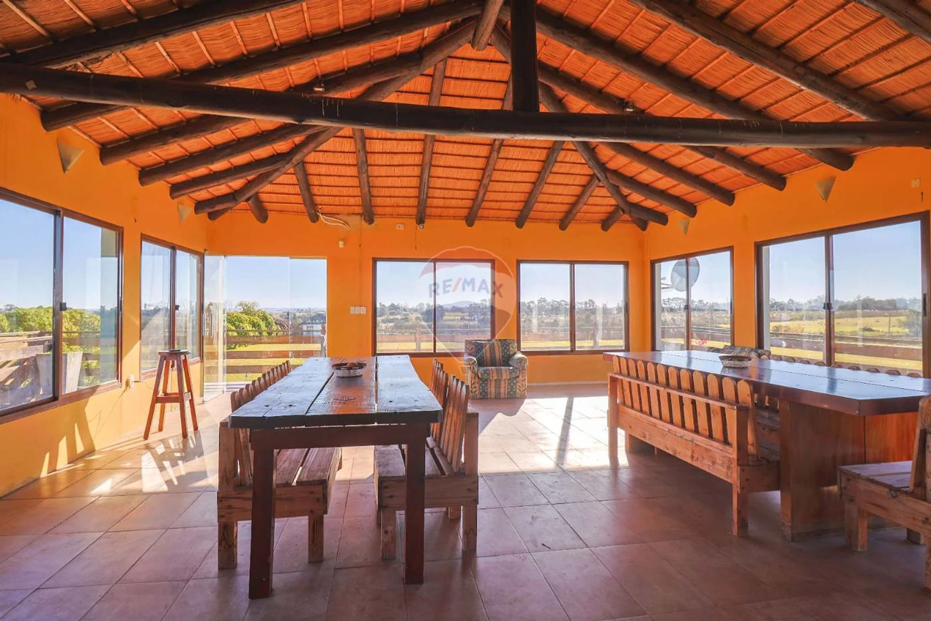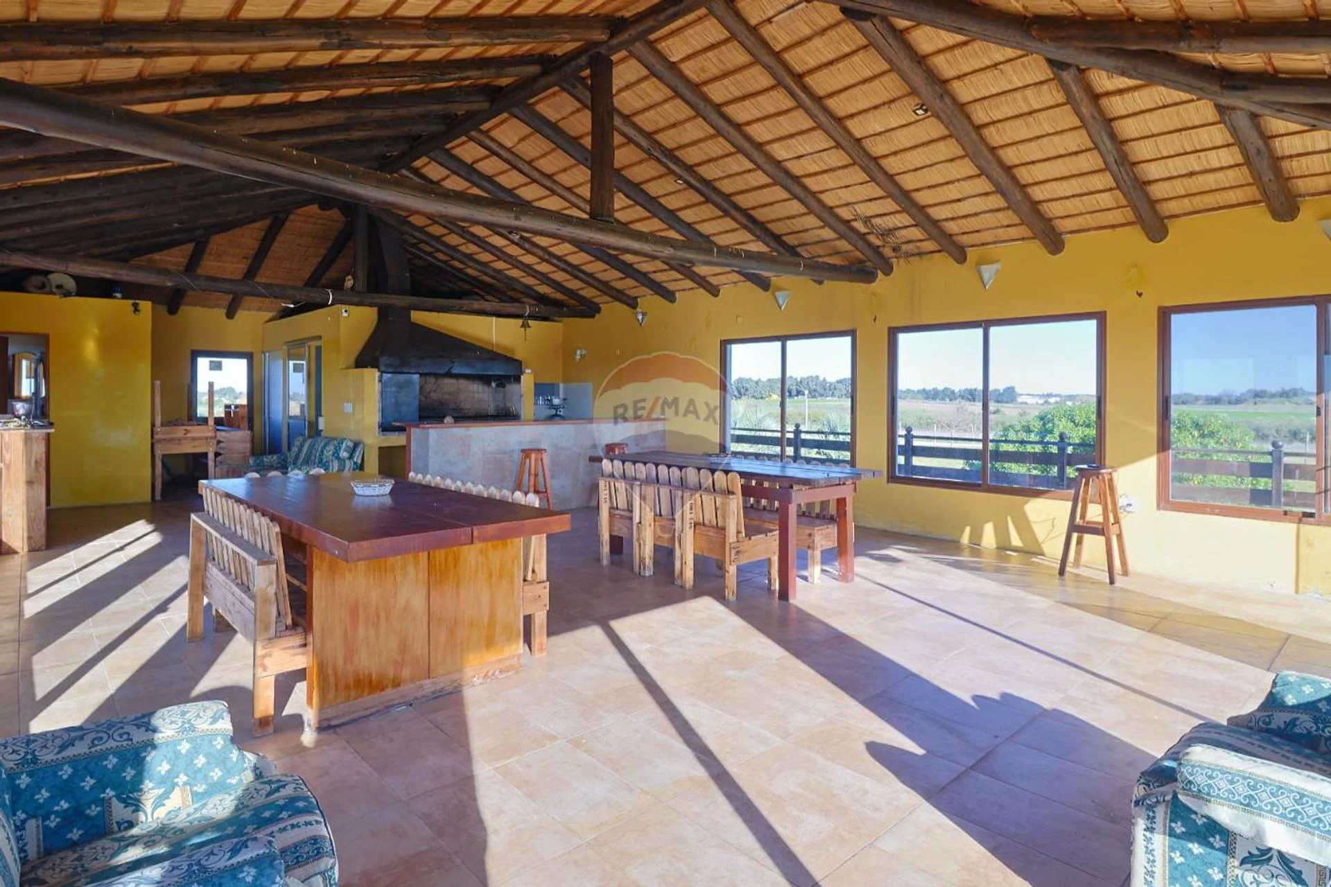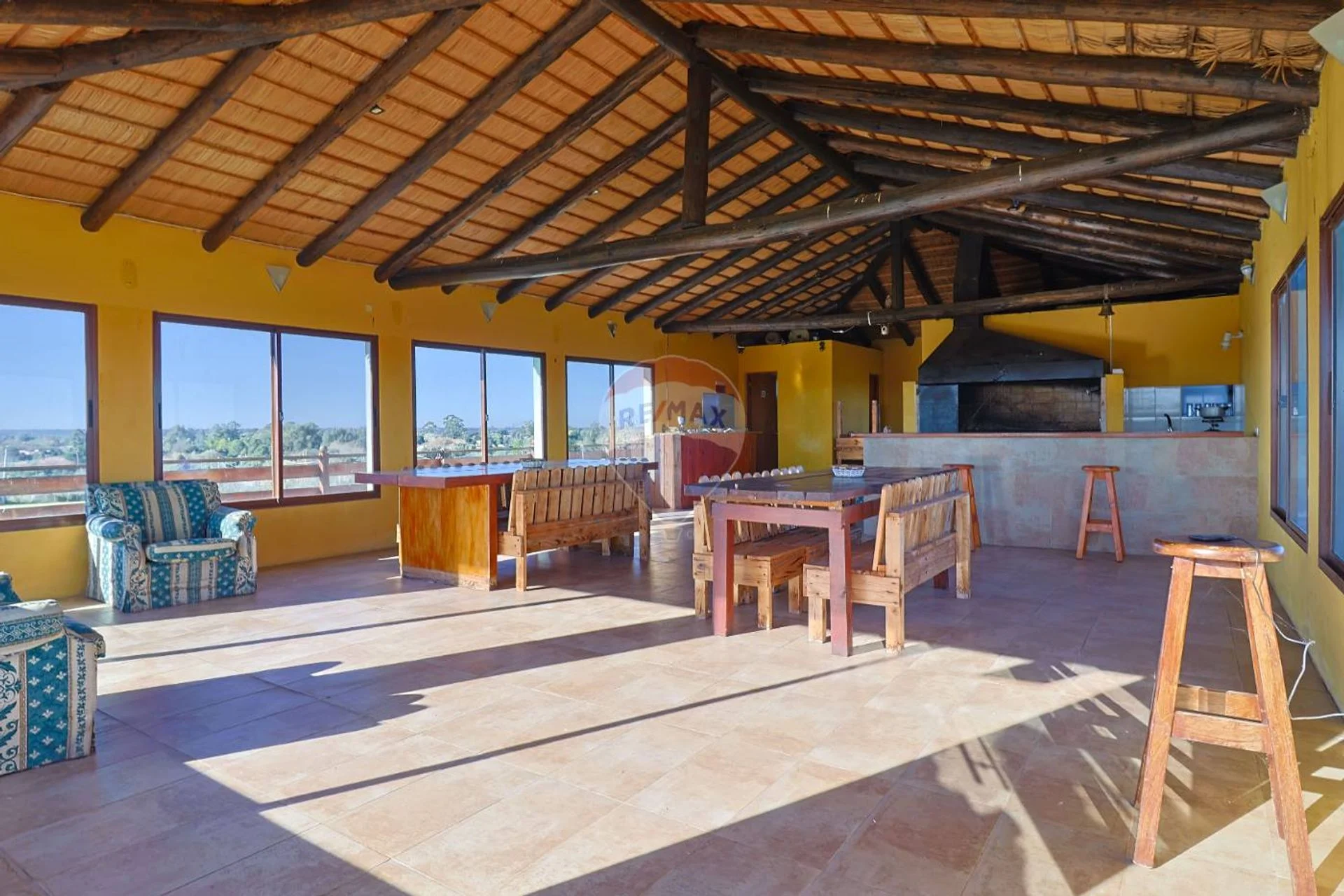 El corazón de la propiedad es un hermoso salón quinchado tipo barbacoa, con un espectacular balcón perimetral que ofrece una vista panorámica de todo el complejo. Este espacio puede funcionar como cantina durante los partidos o ser utilizado para eventos particulares.