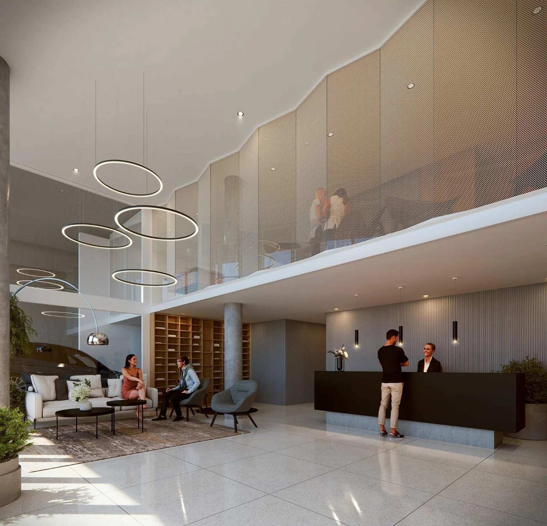 El edificio se desarrolla en 13 pisos más planta baja y cuenta con 109 apartamentos de momo, 1 y 2 dormitorios. Incluye 59 garajes distribuidos entre el subsuelo y la planta baja, además de un local comercial.