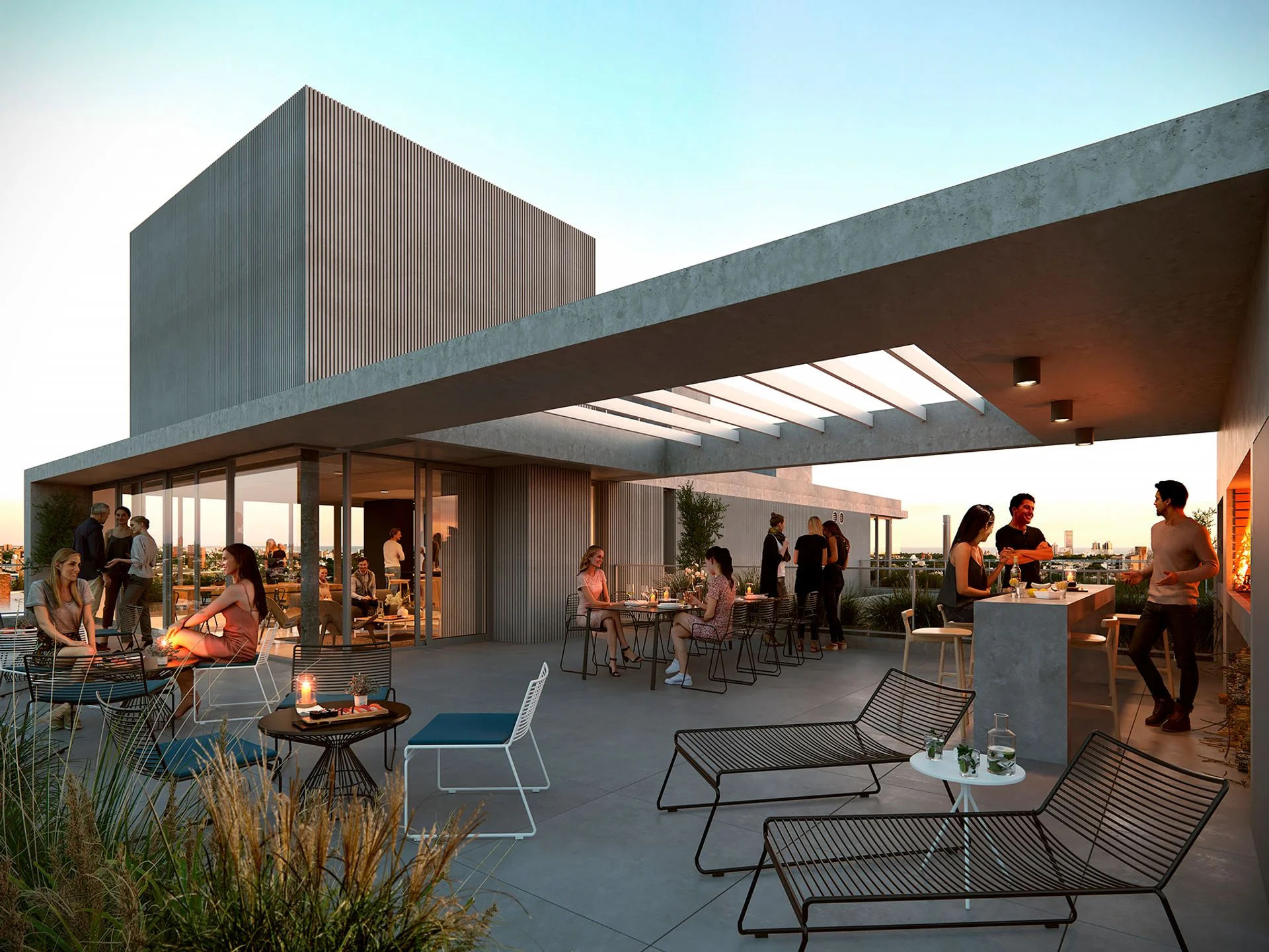 Como espacios comunes, ofrece bicicletero, laundry, gimnasio, playroom, 2 barbacoas / parrilleros y 2 terrazas lounge