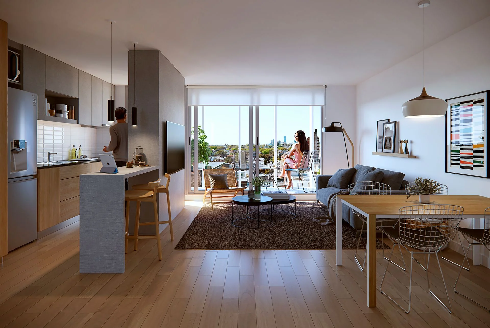 Las unidades cuentan con cerramientos de amplias dimensiones, cortinas monoblock, la cocina con mesada de granito y muebles sobre y bajo la mesada, anafe vitrocerámico de 2 hornallas, instalación prevista para lavarropas, campana instalada y previsión para horno eléctrico empotrado.
