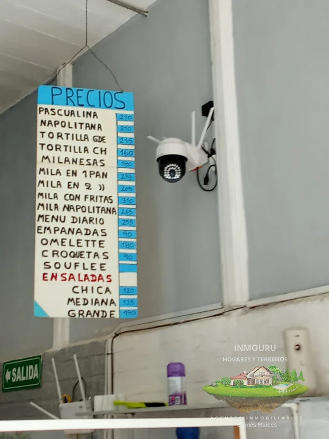 Cuenta con un salón principal con Heladera de Coca Cola , Heladera con freezer, Cocina, Campana, Freidora, Utensilios varios, Bandejas, Mercadería para elaboración, Mesada de acero inoxidable.