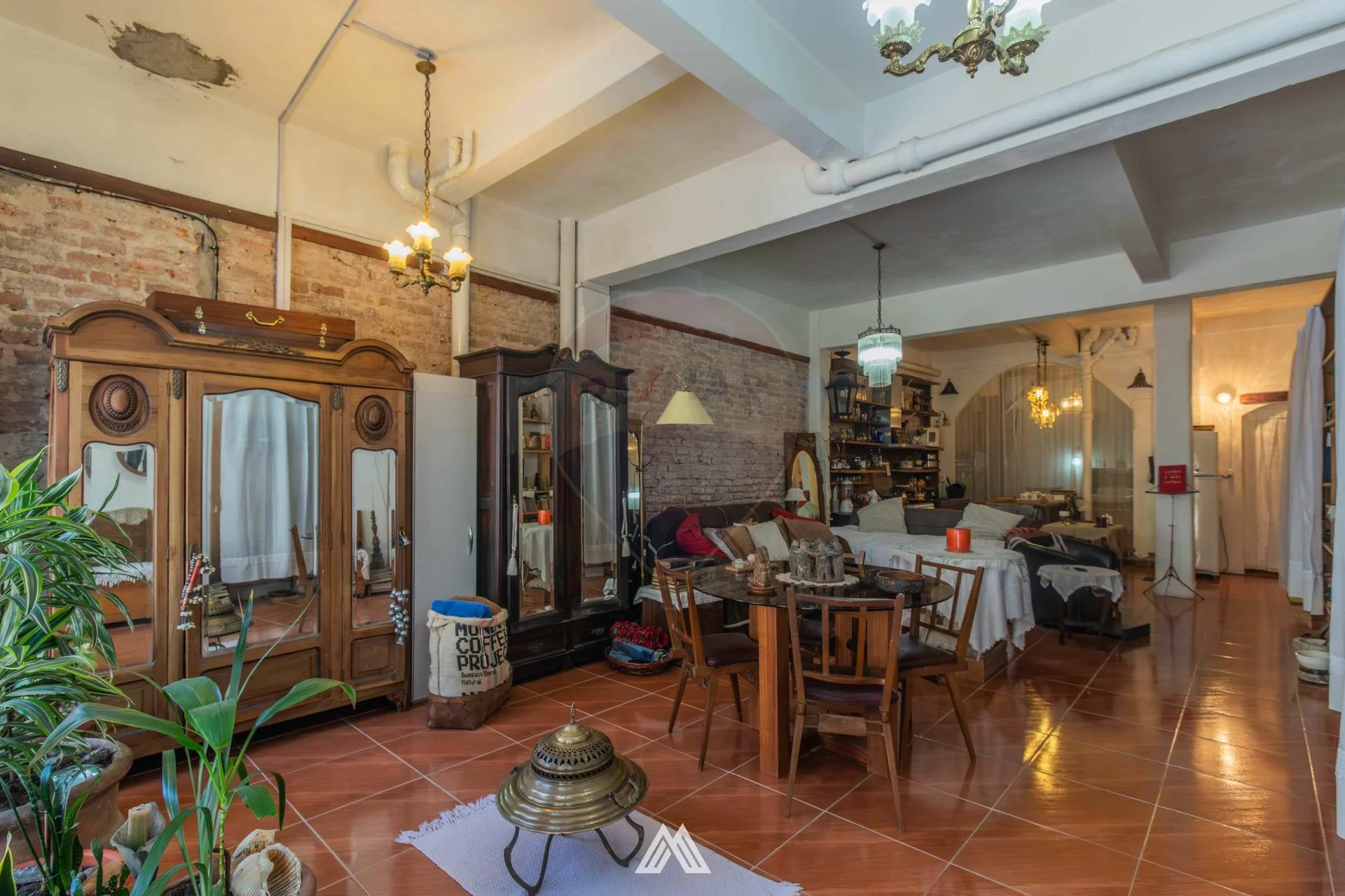 Construcción tradicional de gran calidad en buen estado de conservación, interior estilo industrial con ladrillos a la vista.