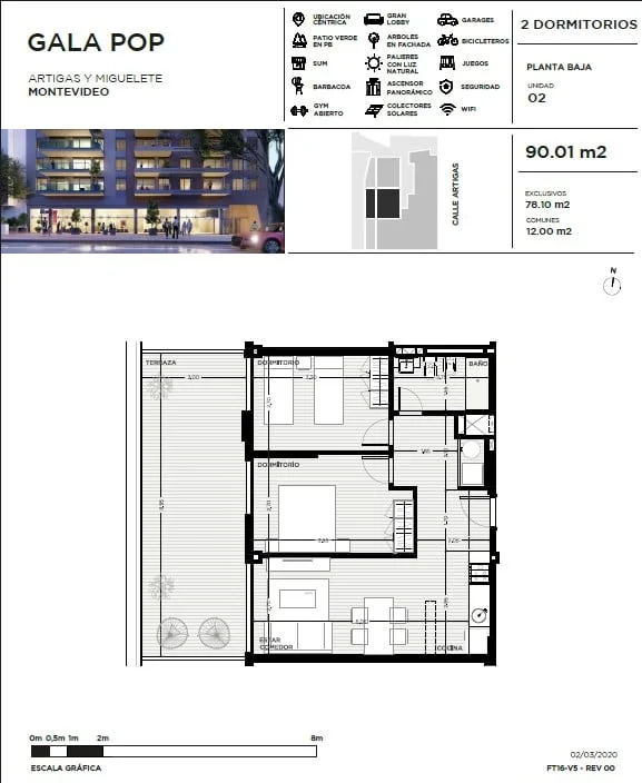 Venta de apartamento de 2 dormitorios con patio en Gala POP, ubicado en Bv. General Artigas y Miguelete, Tres Cruces. En una zona ideal con la mayor oferta educativa, de salud, a pasos de la terminal y del Parque Batlle. En etapa de lanzamiento!