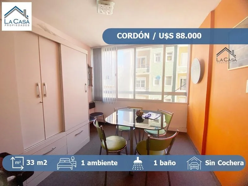 Venta de monoambiente en Zona Cordón, Sobre Av 18 de Julio. Ideal Renta. El apartamento cuenta con 33m2, en un segundo piso por ascensor, se ingresa por 18 de Julio pero da al frente de Coronel Brandzen. Cocina definida, con mesada y placares. Baño de buen tamaño. Ambiente amplio con separación. El edificio cuenta con Portería, de lunes a viernes de 9:00 a 17 y los sábados 9:00 a 13:00.