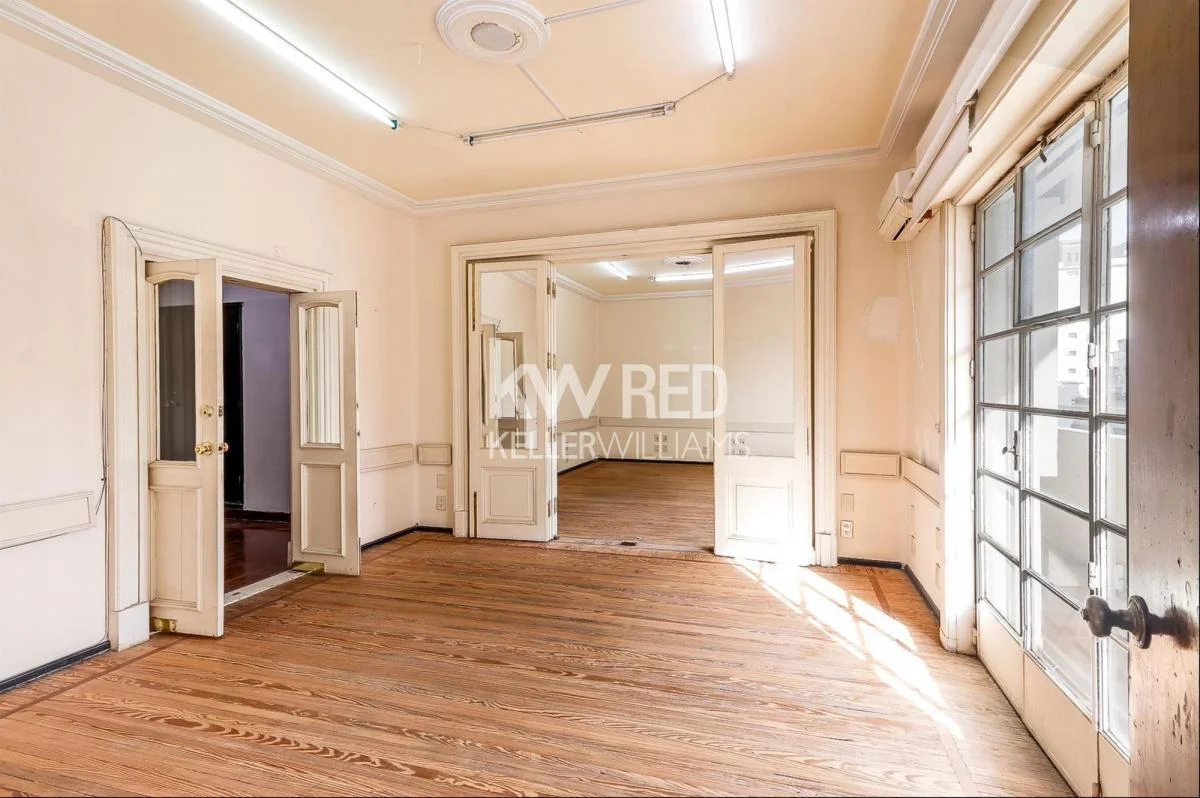 Este amplio apartamento cuenta con una distribución ideal para uso profesional, con espacios generosos y bien definidos que permiten múltiples configuraciones según las necesidades de su empresa. El acceso principal es a través de un vestíbulo o recibidor conectado a la zona social, que incluye un estudio, un living espacioso y un comedor, todos ellos con excelente iluminación gracias a la orientación Norte y Oeste del inmueble. Los techos altos y las grandes ventanas aportan una sensación de amplitud y luminosidad inigualables.