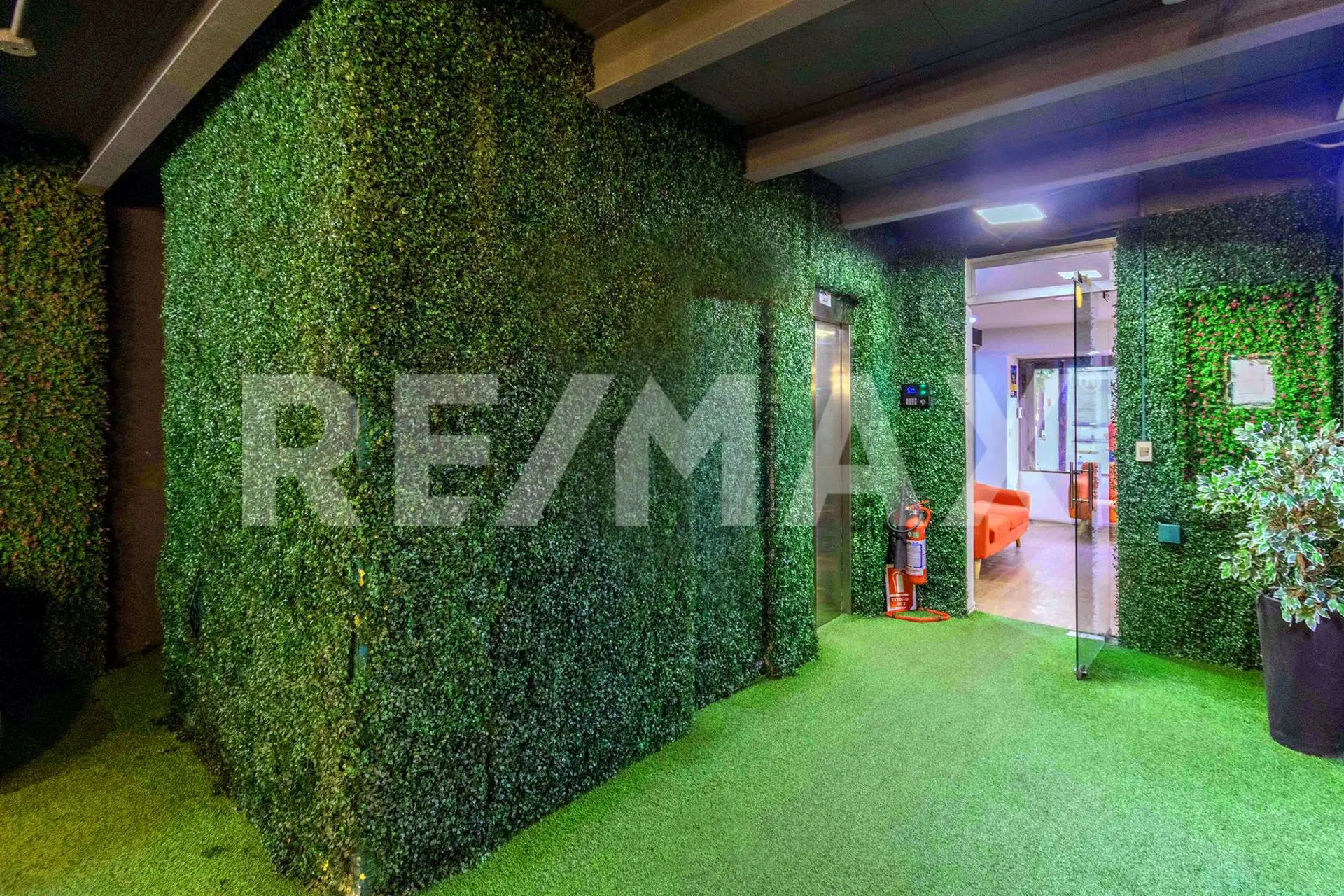 El edificio está equipado con aire acondicionado central, ascensor, y escaleras que conectan todos los niveles. Las divisiones internas en yeso y vidrio ofrecen facilidad para reconfigurar los espacios según las necesidades del inquilino. Además, cuenta con un cableado estructurado moderno y ventanales que permiten excelente iluminación natural en todos los pisos.