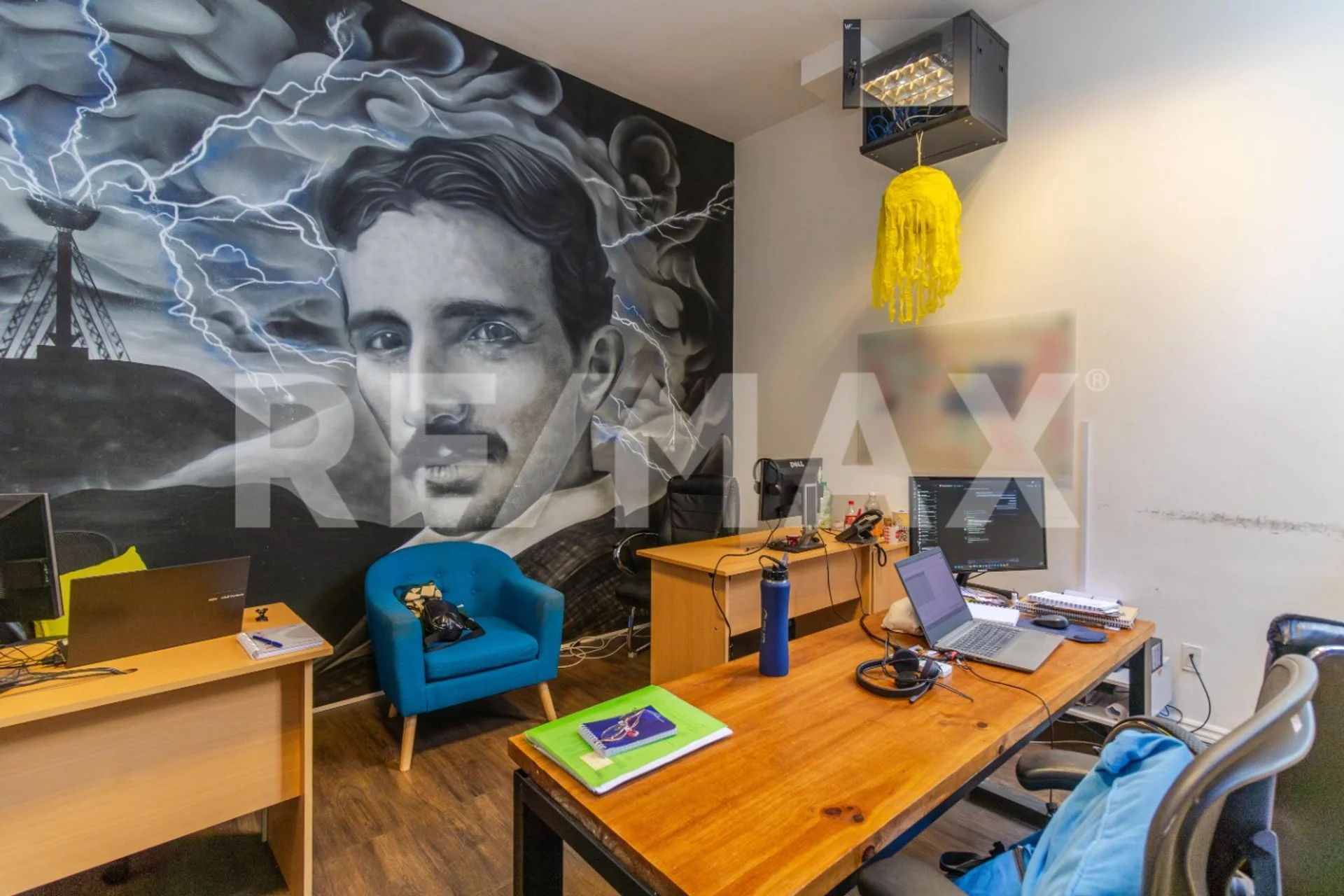 Pisos 1 y 2(228m2 primer piso y 213m2 segundo piso): Espacios versátiles con divisiones modulares y baños en cada piso. El primer piso incluye un salón de clases y oficinas privadas, mientras que en el segundo hay múltiples oficinas y salas de reuniones.