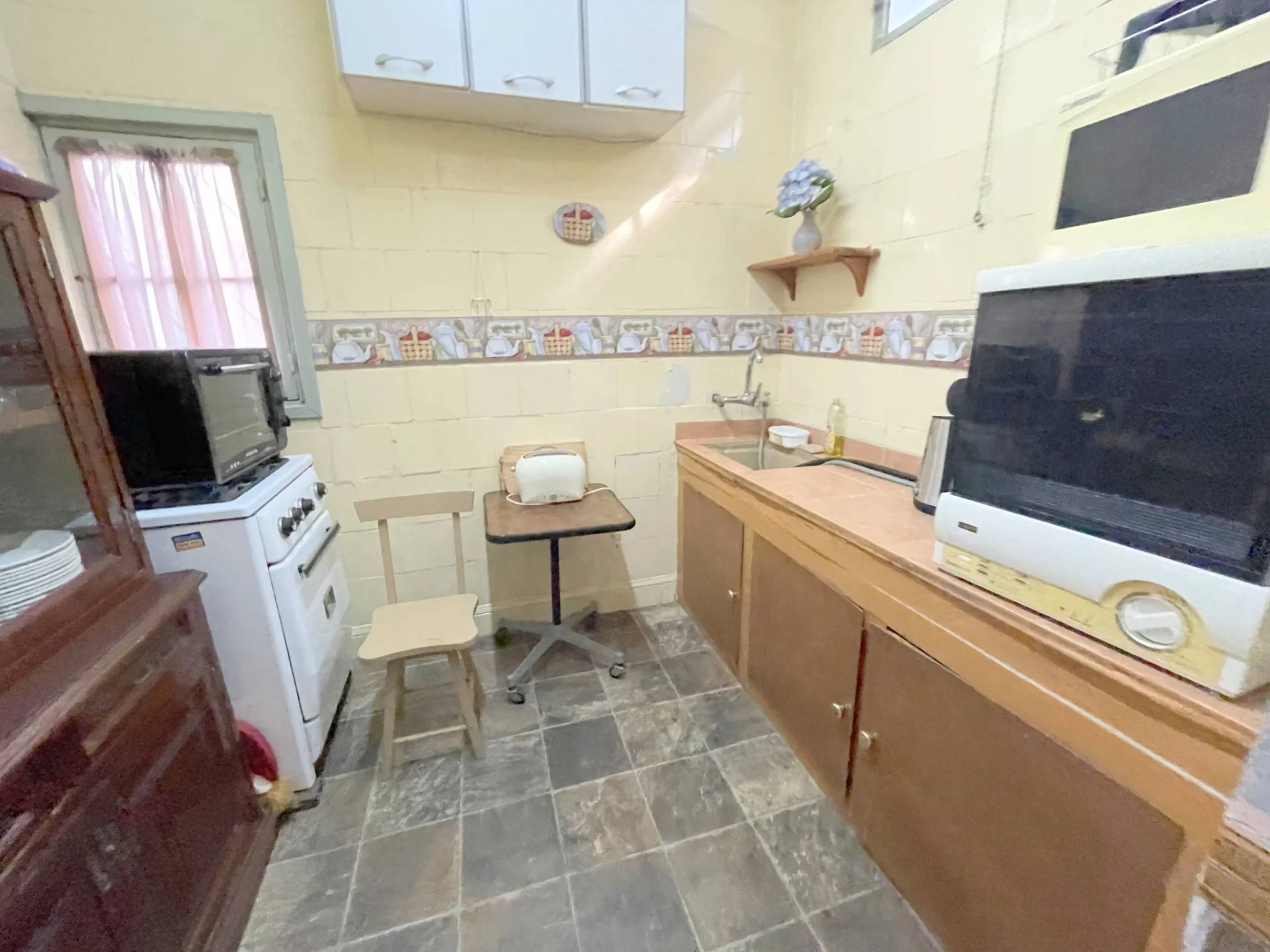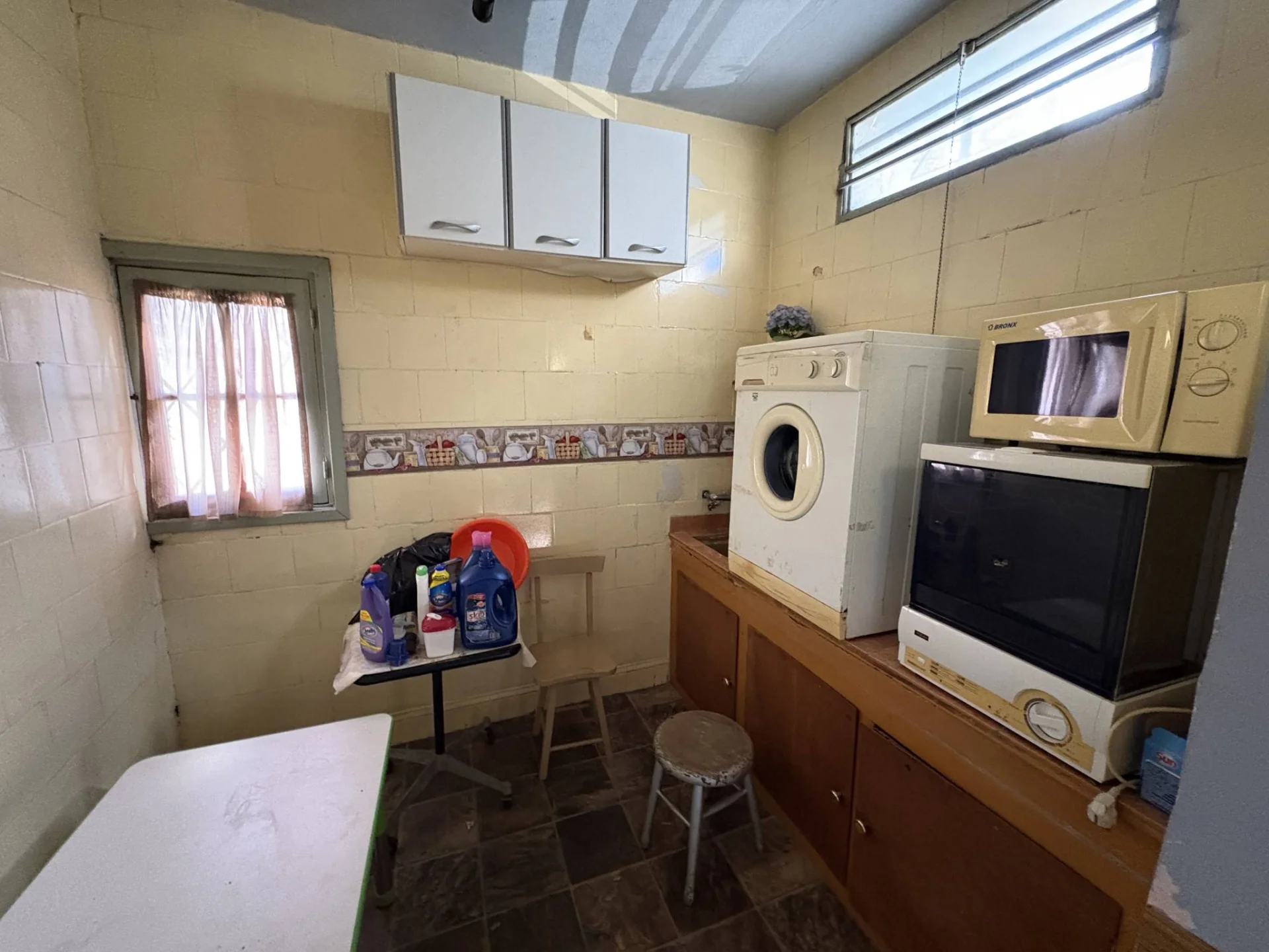 Baño social y cocina definida muy iluminada con aereos y bajo mesada con salida a pequeño desahogo.