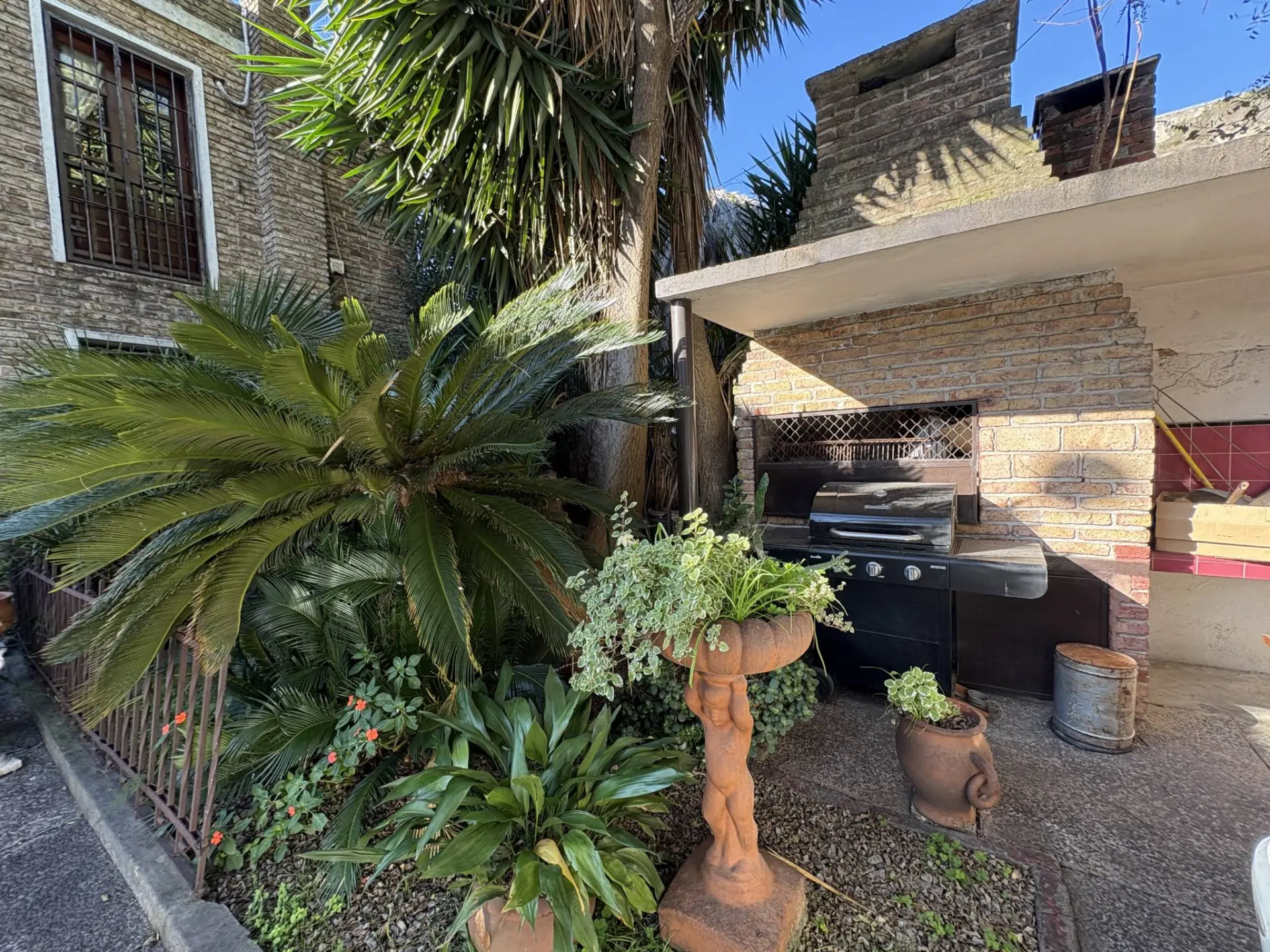 Amplio patio con parillero con espacio para ingreso vehicular de uso compartido.