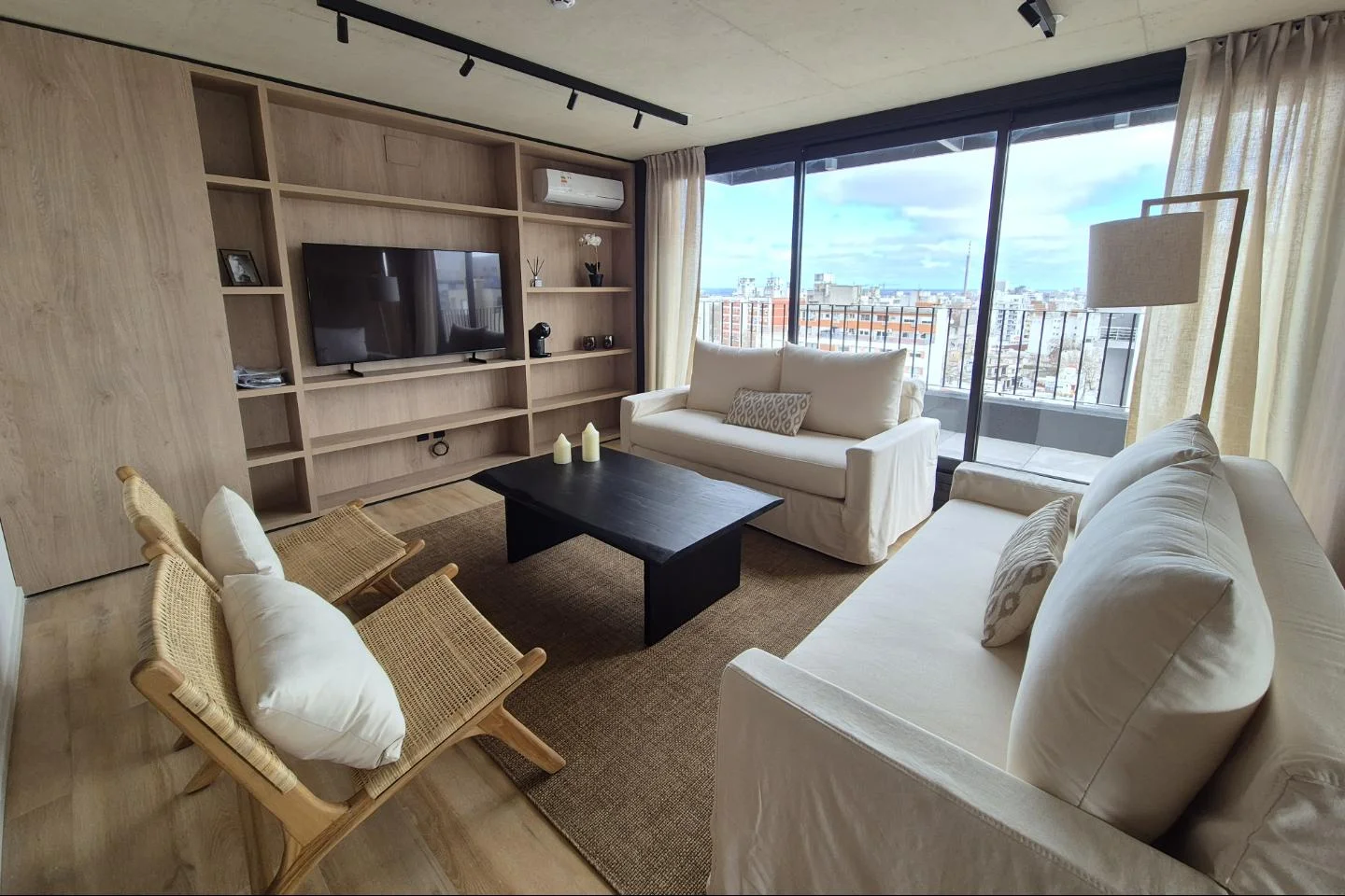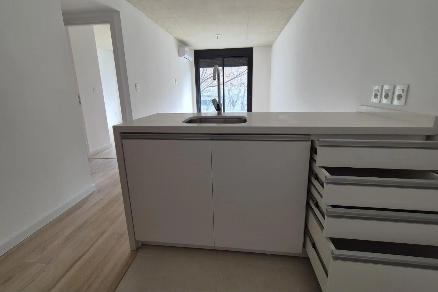 -Equipamiento completo: aires acondicionados en ambos ambientes.-Cocina de categoría: placares sobre y bajo mesada, mesadas de cuarzo blanco y terminaciones premium.-Dormitorio con mampara y detalles de alta calidad.