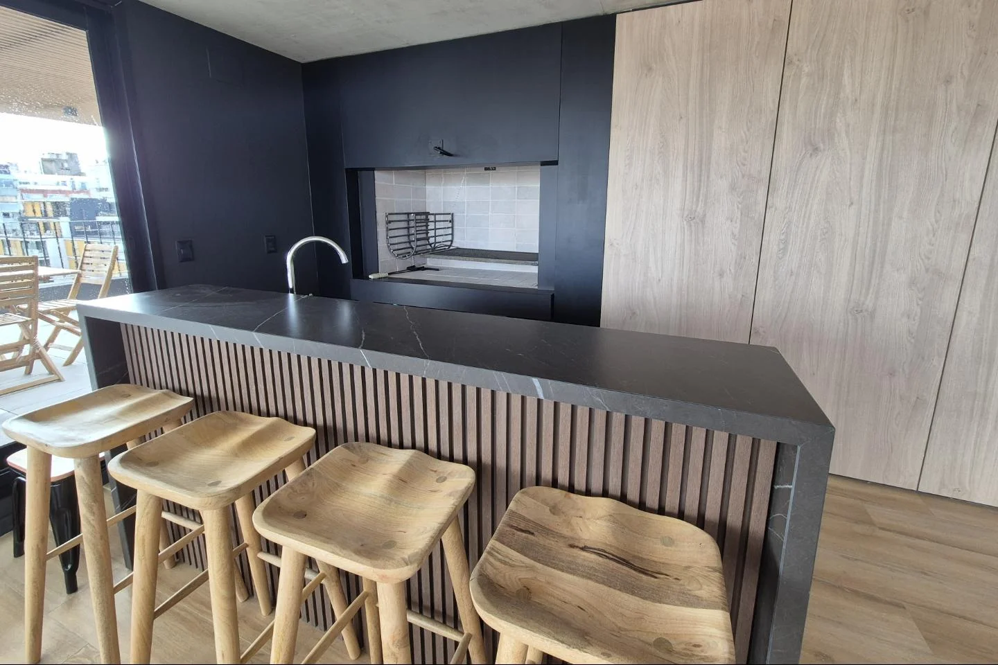 Barbacoa con living de diseño.