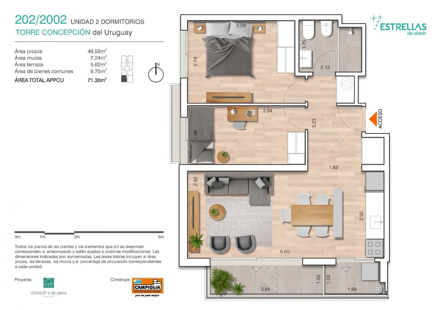 La distribución interior es muy versátil permitiendo conexión y funcionalidad en los distintos ambientes.