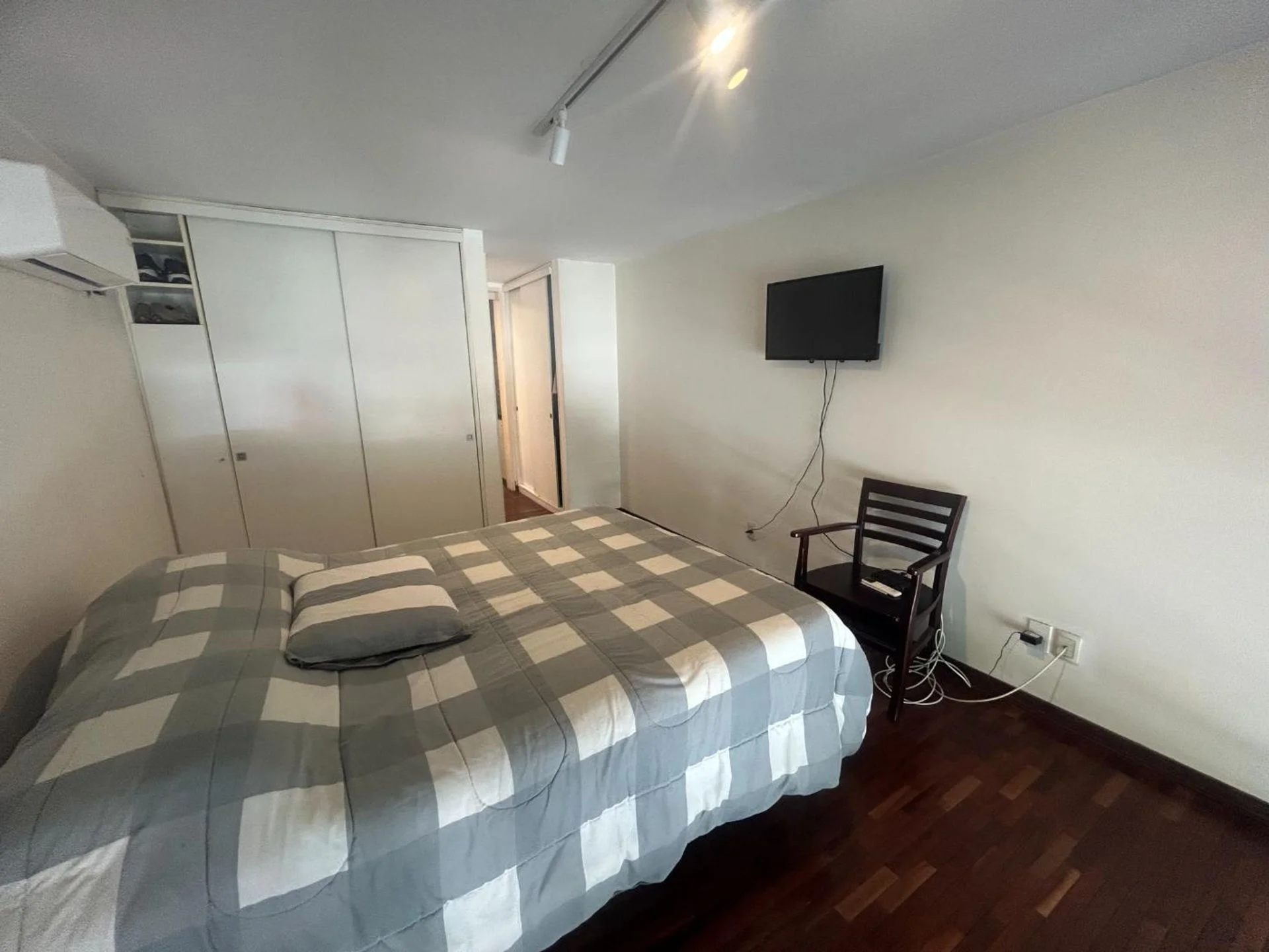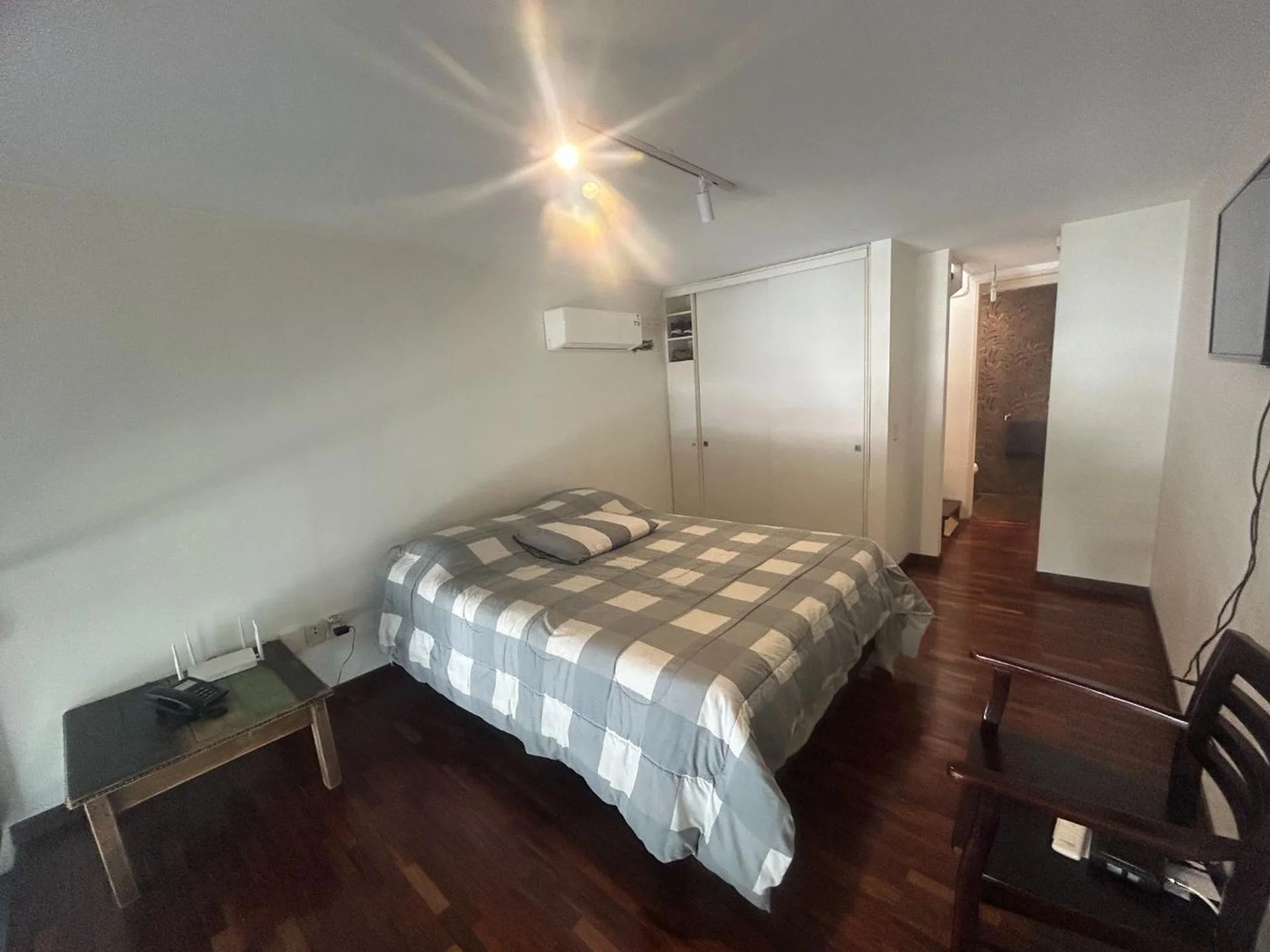 Por cómoda escalera accedemos a planta alta donde se desarrolla un dormitorio amplio, con doble altura, que realza la sensación de amplitud, con aire acondicionado. Amplio baño completo.