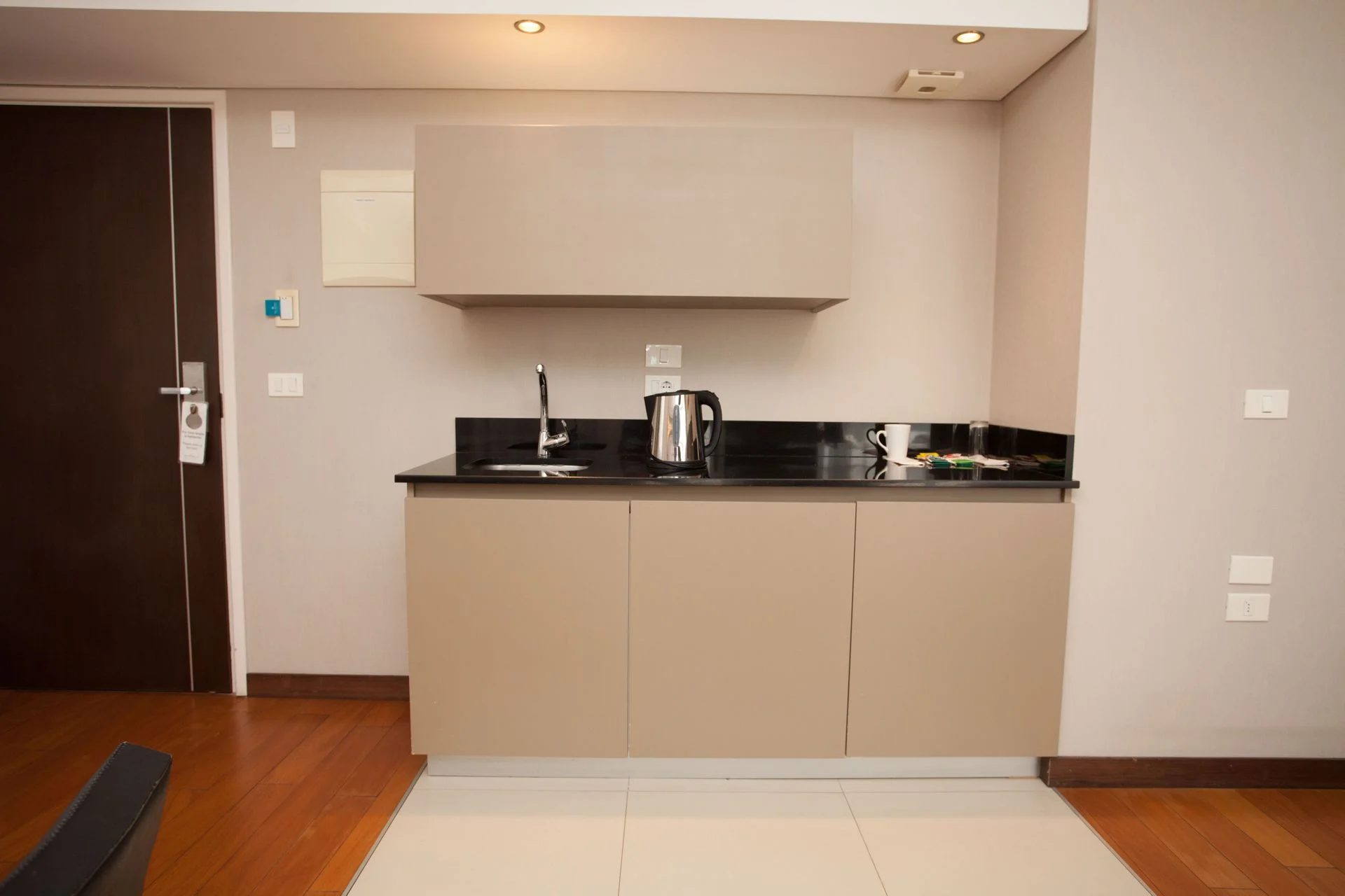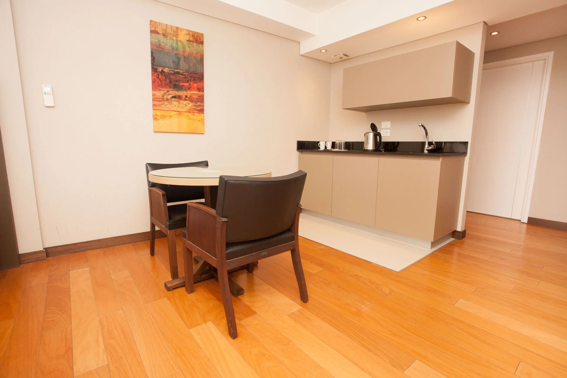 Piso de madera flotante , frigo bar ,microondas, jarra eléctrica, vajilla, caja de seguridad,