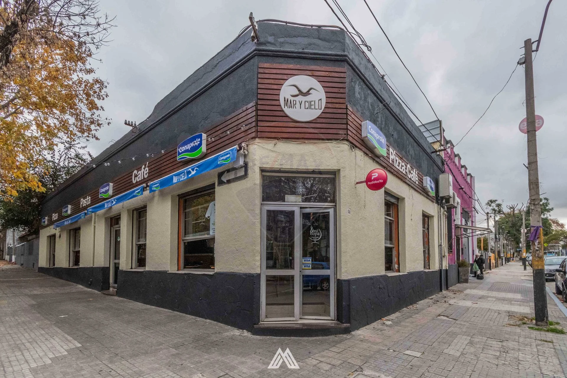 En esta espectacular esquina funciona Mar y Cielo, una pizzeria establecida en el rubro y su marca hace mas de 25 años.