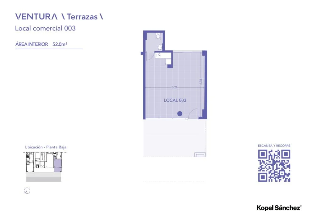 Ubicado en el edificio Terrazas de Ventura, este local comercial en planta baja cuenta con 52 m2, disposición al frente, baño y kitchenette.