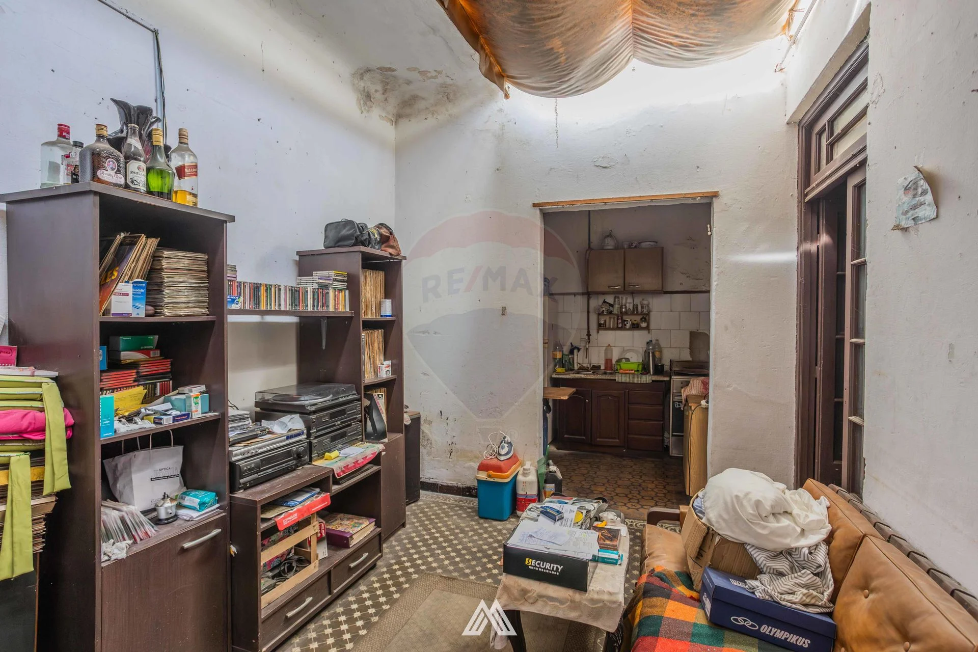 Se ingresa a un salón de 158 m2, de ahi pasamos a otro espacio de 58 m2 con entrepiso, y a continuación apartamento de 52 m2 con dos dormitorios, cocina comedor y baño, para actualizar.