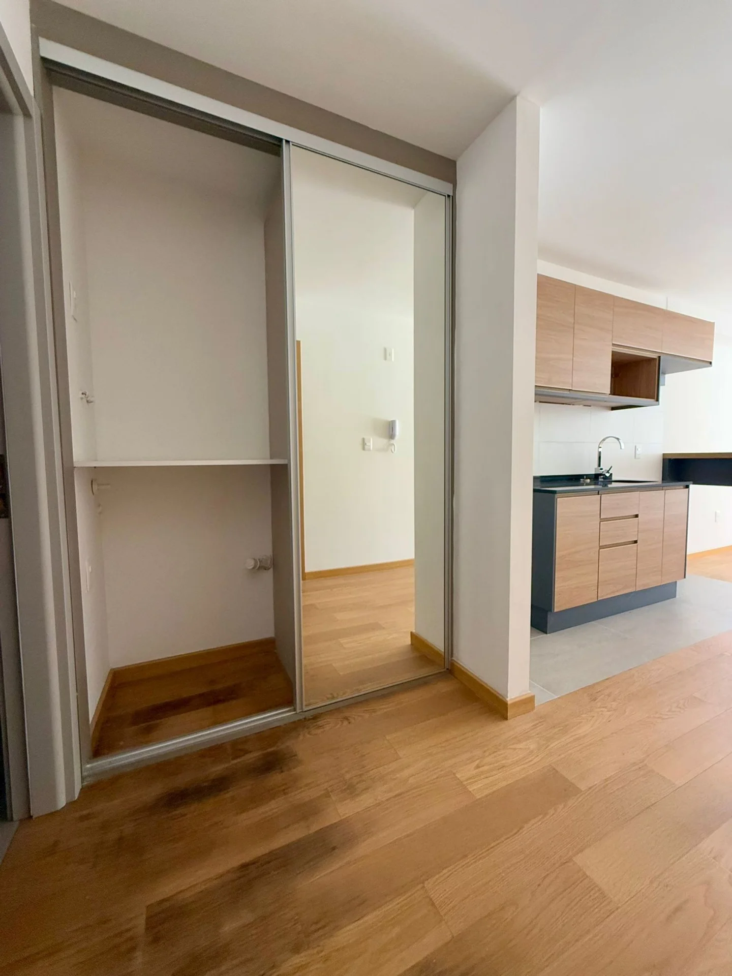 Placard con espacio de guardado y conexión para lavarropas.