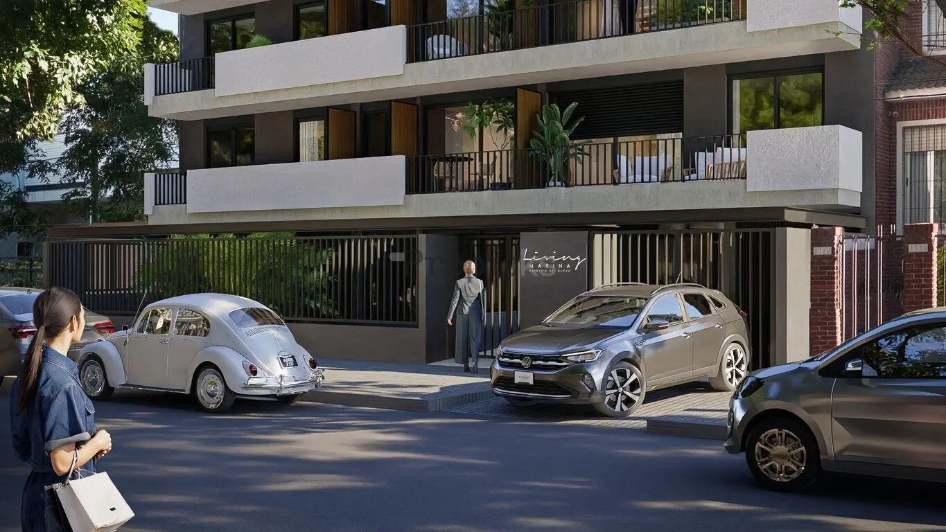 El edificio ofrece garajes opcionales en subsuelo y una serie de amenities que acompañan el estilo de vida contemporáneo: laundry con máquinas operables mediante aplicación, barbacoa con parrillero interior totalmente equipada, espacio de coworking con mesa colectiva y gimnasio con equipamiento de última generación.