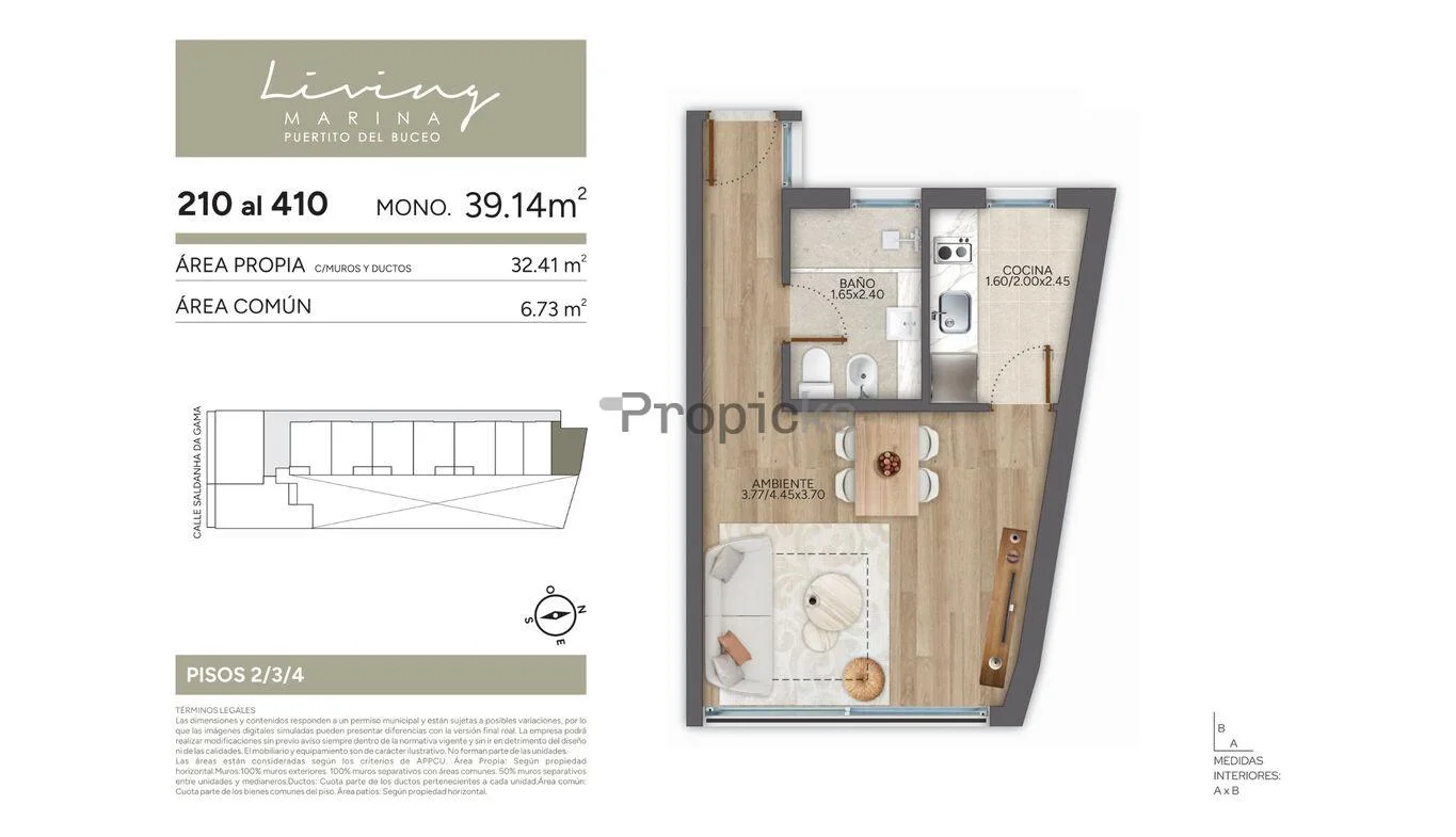 Monoambiente en planta baja con amplio patio exclusivo dentro del proyecto Living Marina, en Puertito del Buceo.