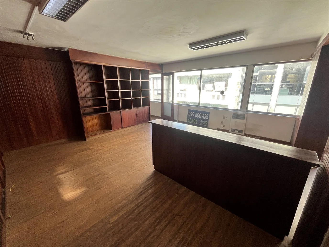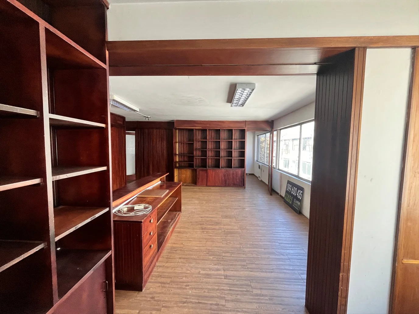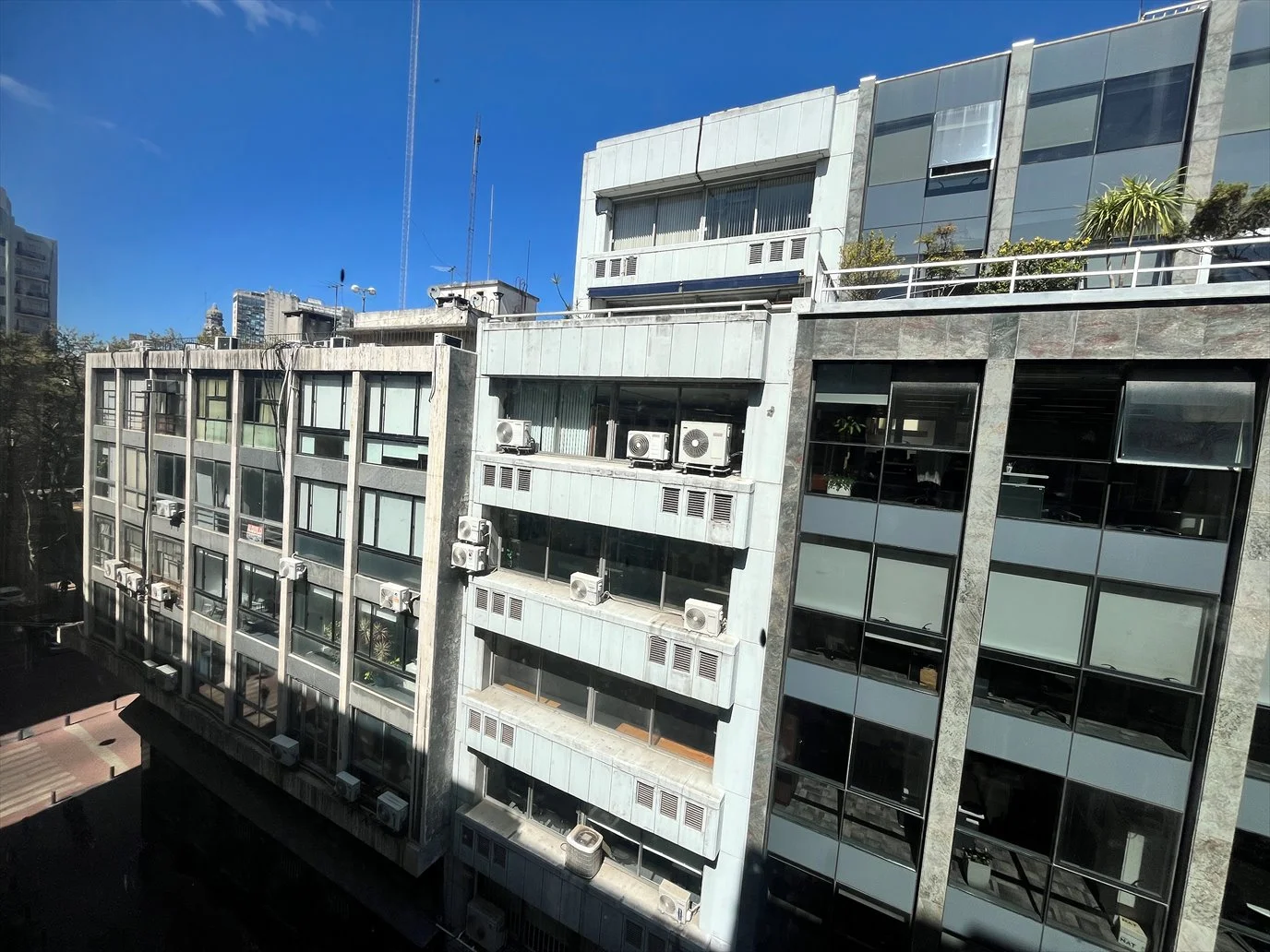 Esta oficina cuenta con 74 metros cuadrados edificados y una distribución interna de 3 ambientes con doble circulación, bibliotecas y mobiliario de madera empotrado y amplia superficie vidriada al frente, muy luminosa y con vista lateral a Plaza Matriz.