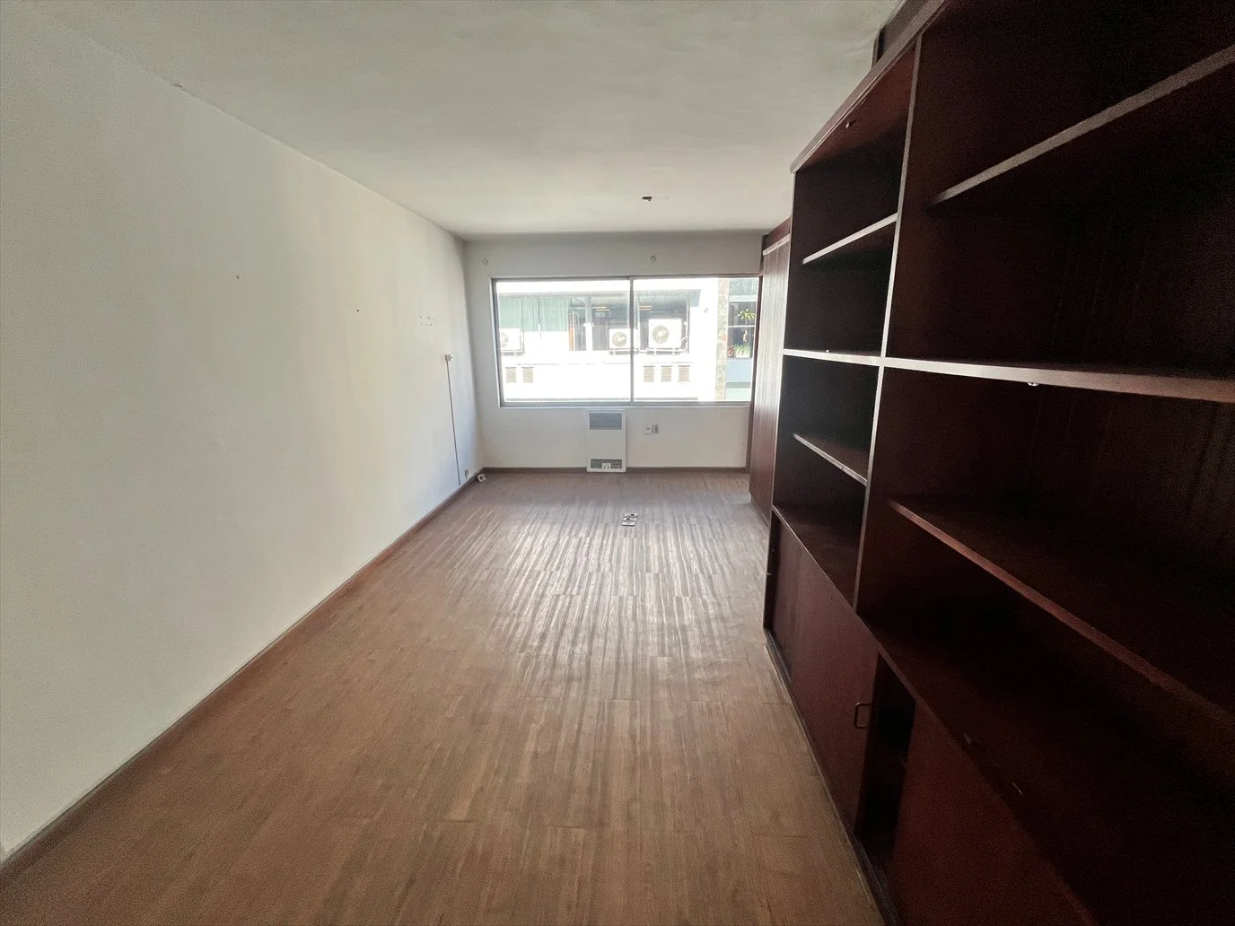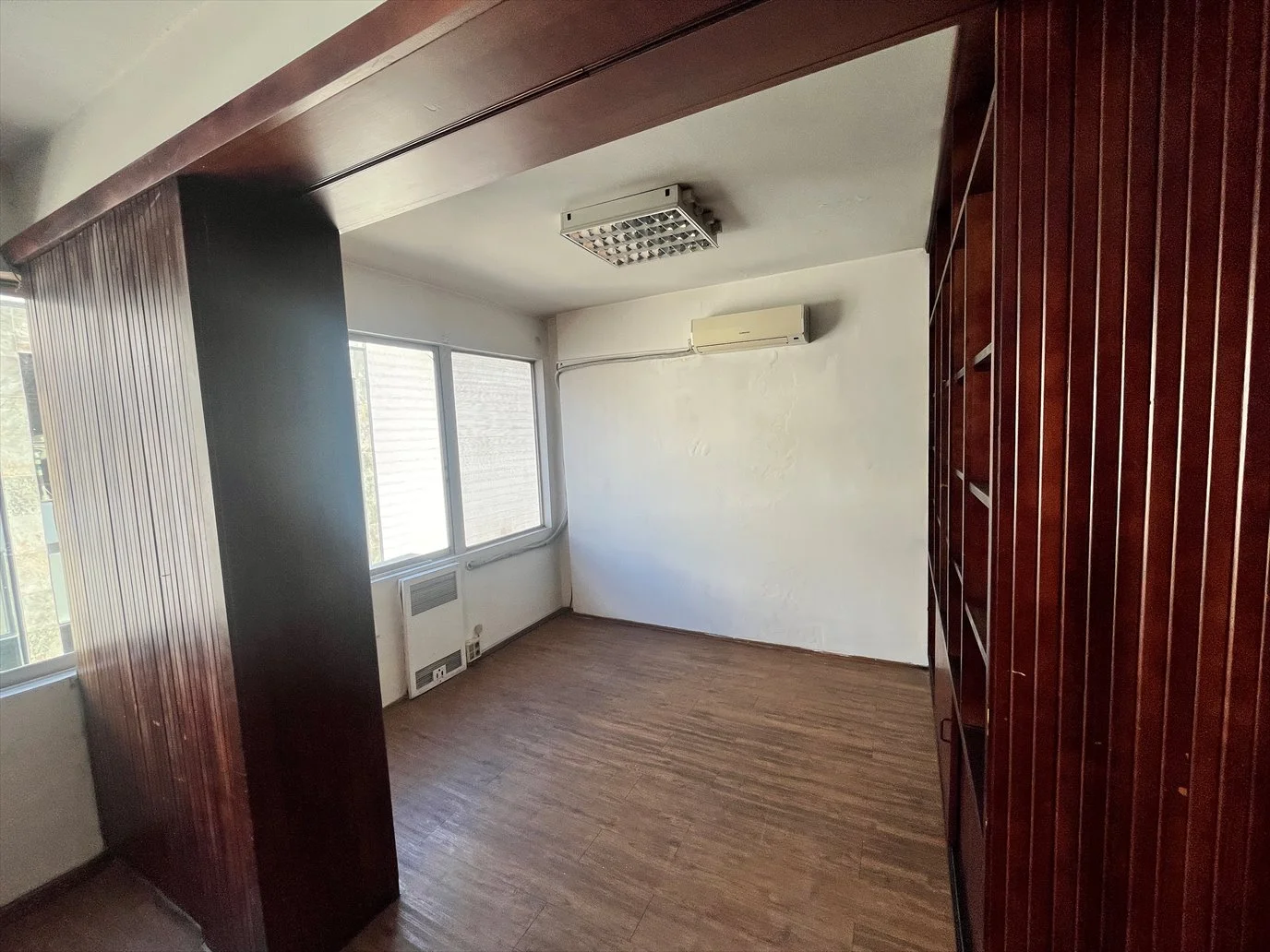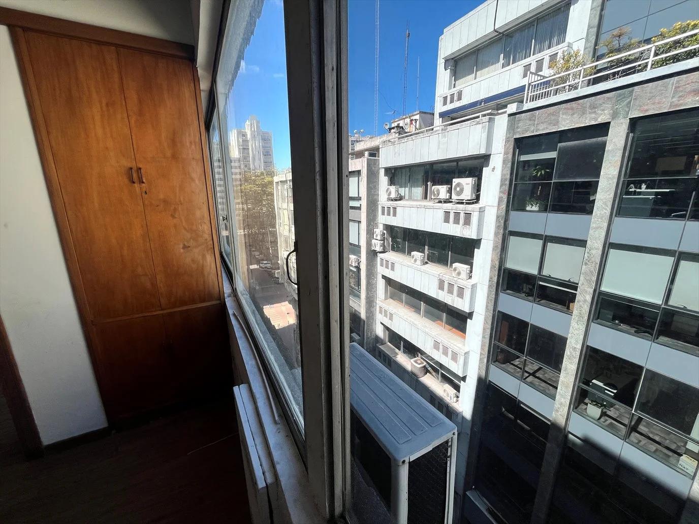 Esta oficina cuenta con 74 metros cuadrados edificados y una distribución interna de 3 ambientes con doble circulación, bibliotecas y mobiliario de madera empotrado y amplia superficie vidriada al frente, muy luminosa y con vista lateral a Plaza Matriz.