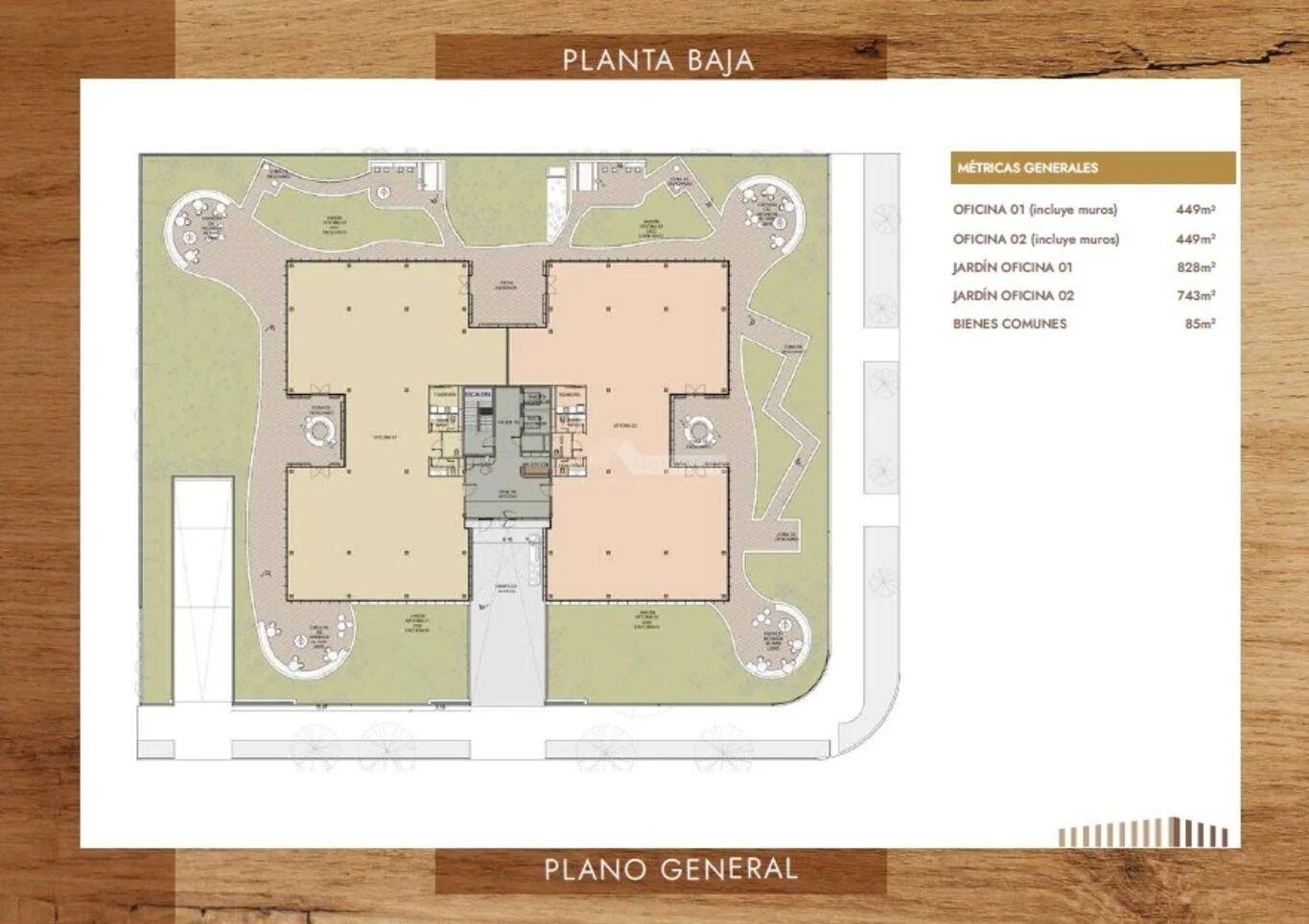 01) 449m2 construidos + 828m2 Terraza y Jardín + 45m2 áreas comunes = Total 1322m2.
