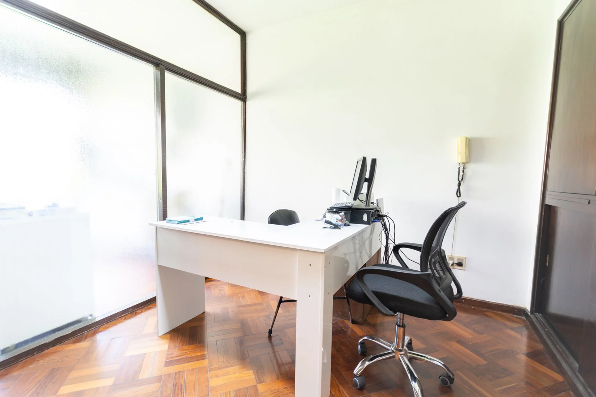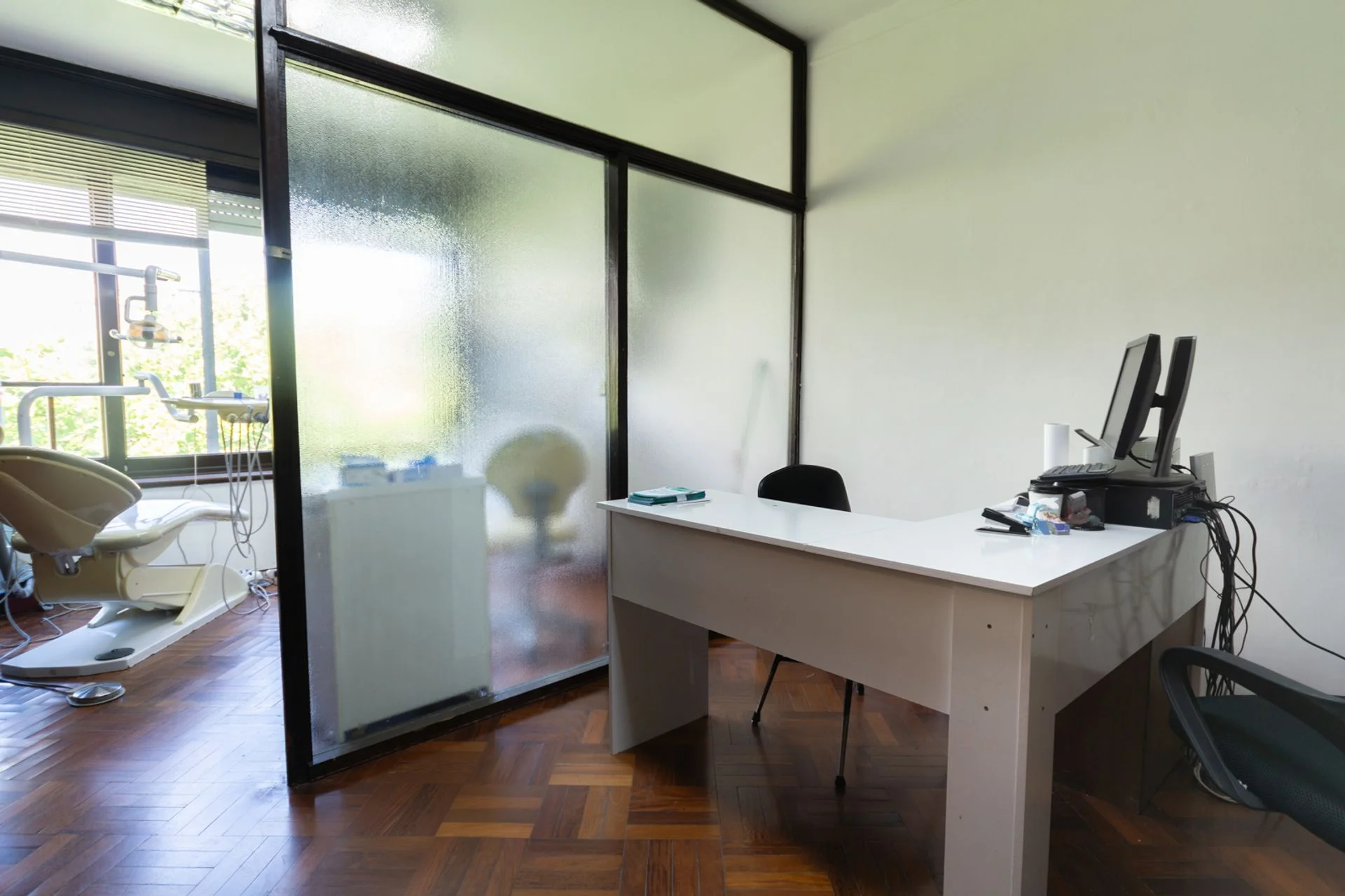 Se ingresa al inmueble por un recibidor (sala de espera), y luego accedemos a un espacio de recepción desde el cual se distribuye el acceso a tres ambientes definidos, ideales para oficinas (o consultorios).