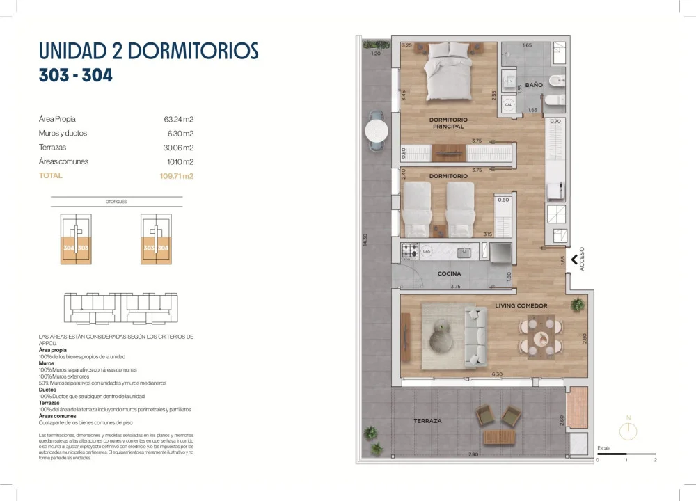 Exclusivo Penthouse de 2 dormitorios: Living-comedor, cocina definida, terraza de 30m2 con parrillero, 2 dormitorios y baño. Último disponible.