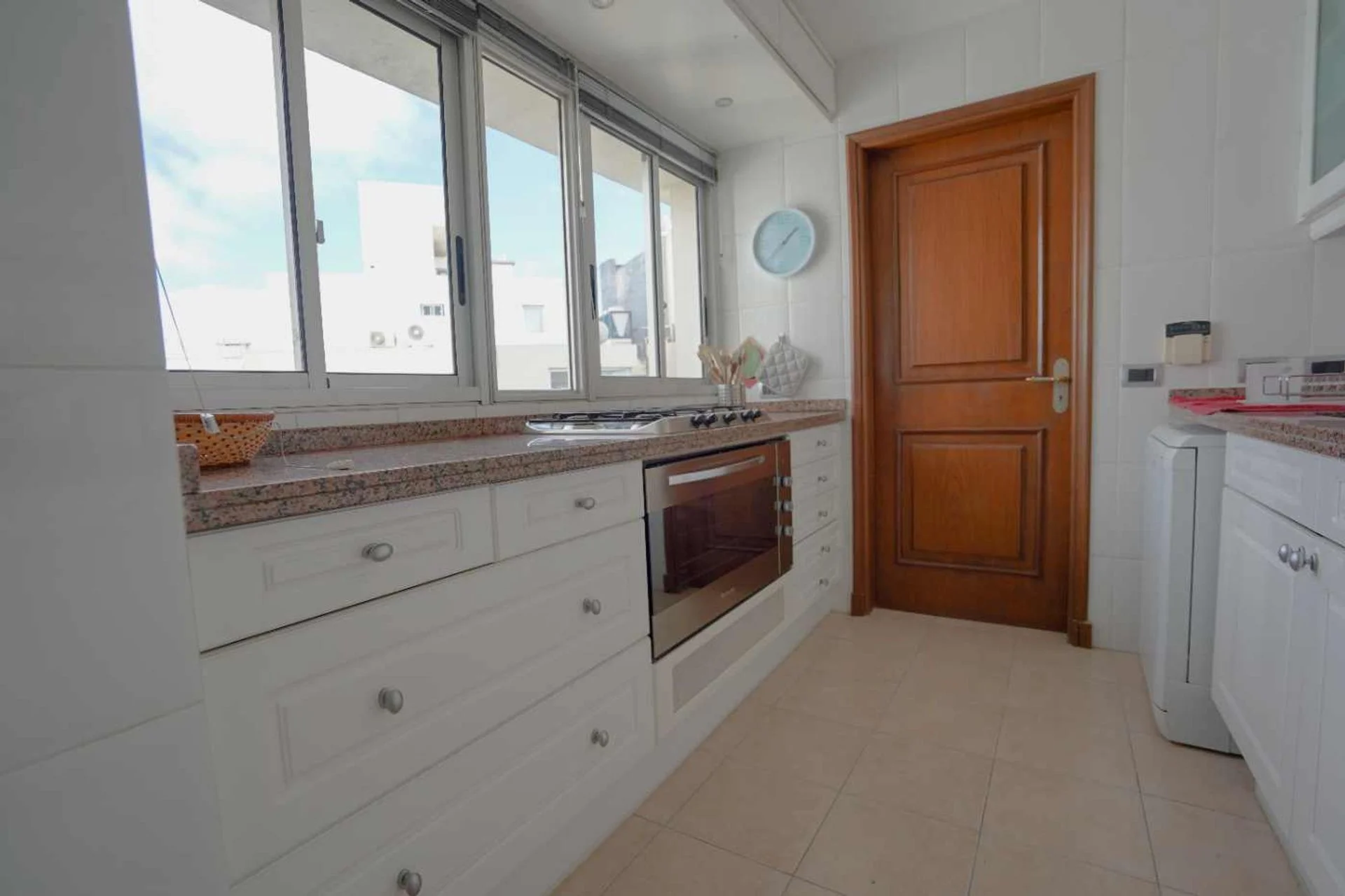 Área íntima: Dormitorio principal en suite al frente, con vista panorámica a la bahía y baño con bañera; segundo dormitorio en suite, cómodo y luminoso; tercer dormitorio en suite con generosos placares y orientación norte. Todos los dormitorios con cortinas de enrollar y persianas eléctricas.