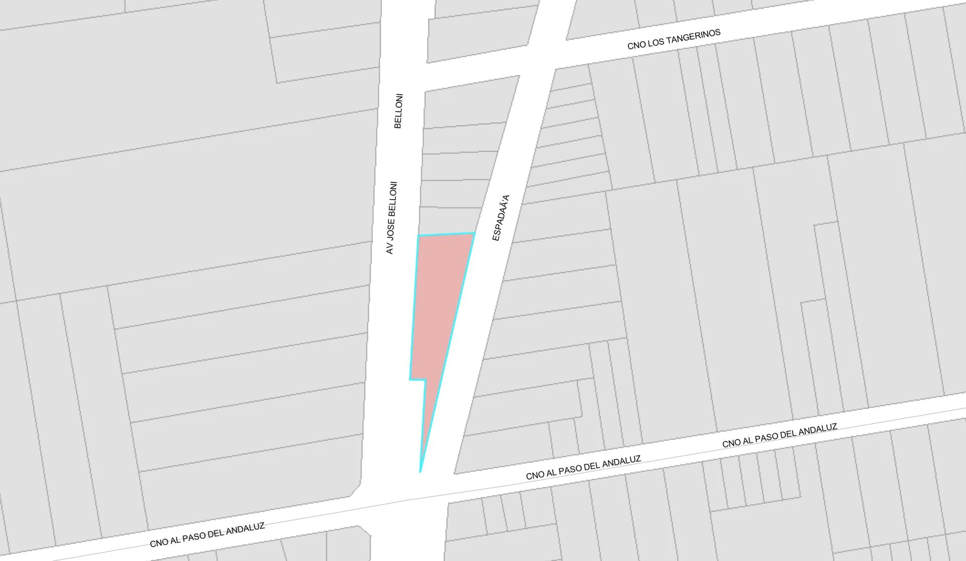 Tiene una superficie de 3028 m2, se trata de un terreno triangular ubicado en la intersección de Jose Belloni y Camino del Andaluz con aproximadamente 90 m2 sobre Av.Belloni, FOS 60%. Por mas información consulte