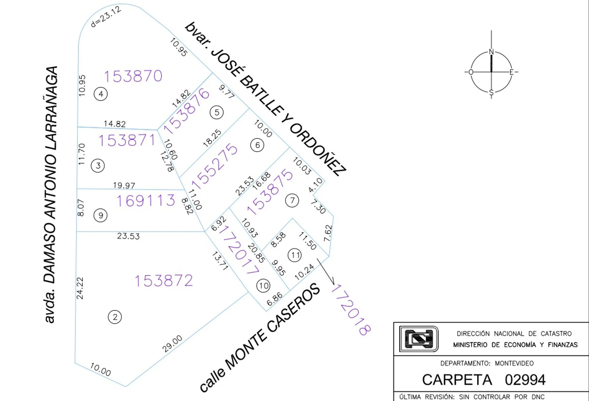 Se vende padrón de 643m2 ubicado en la proa sobre Dámaso Antonio Larrañaga y Monte Caseros.