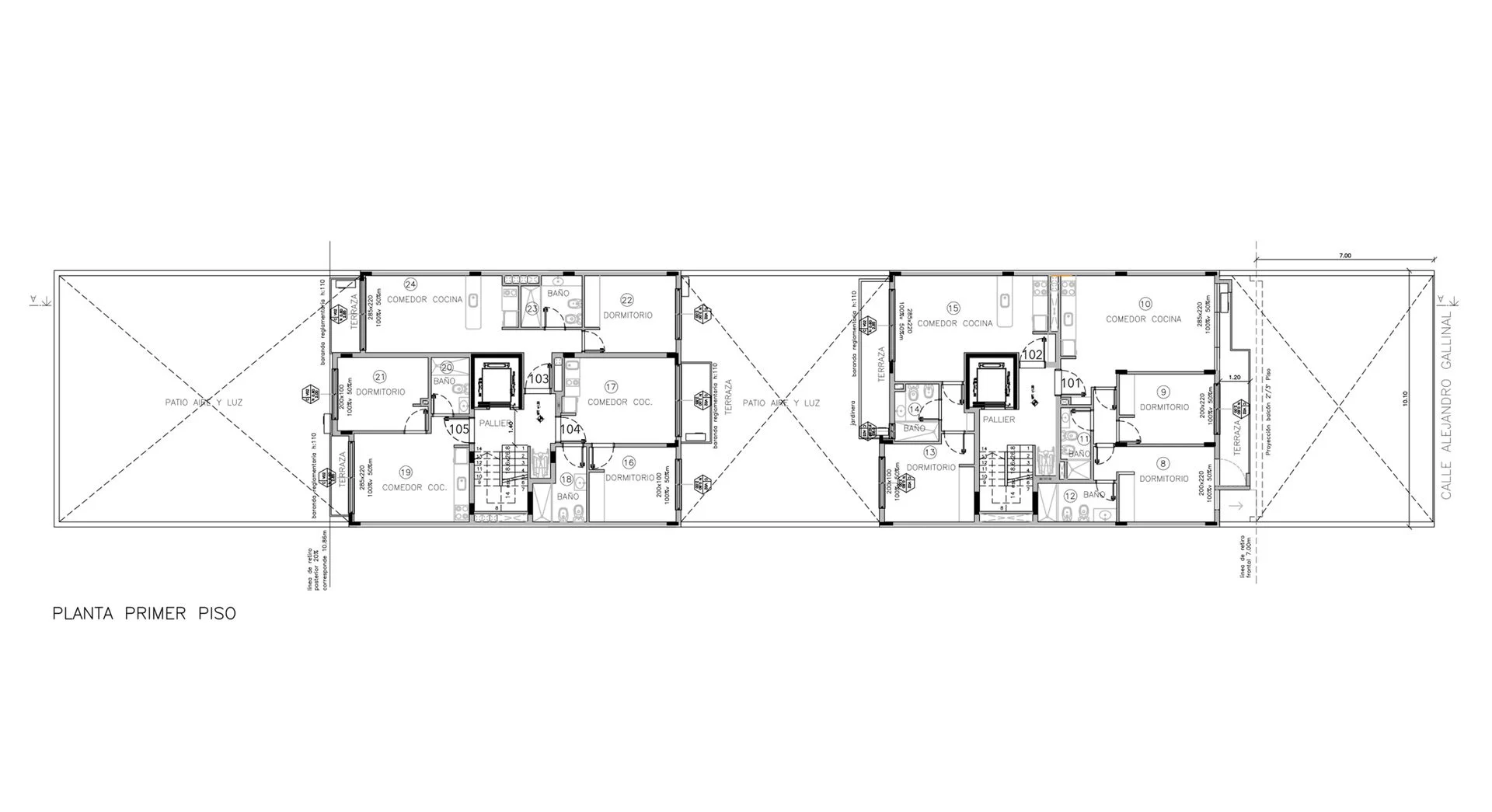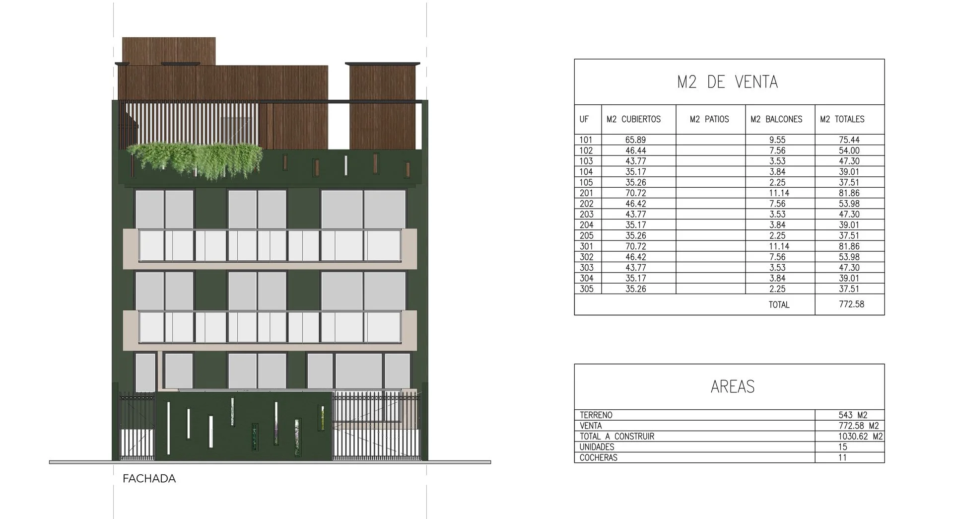 Este proyecto permite la construcción de 15 viviendas, 12 de 1 dormitorio y 3 de 2 dormitorios y 11 lugares de cochera, ideal para inversores interesados en el sector residencial.