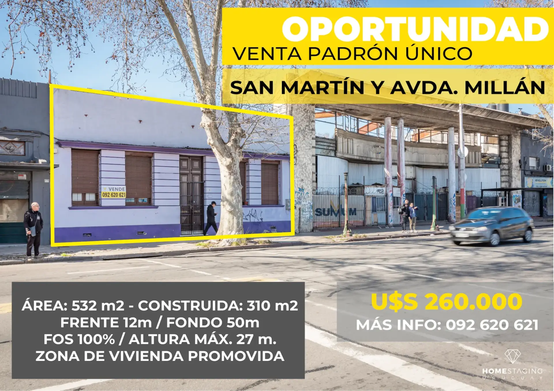 SE VENDE PADRÓN ÚNICO en excelente ubicación Barrio Aguada, Avda. Gral. San Martín & Millán.