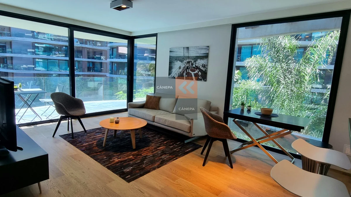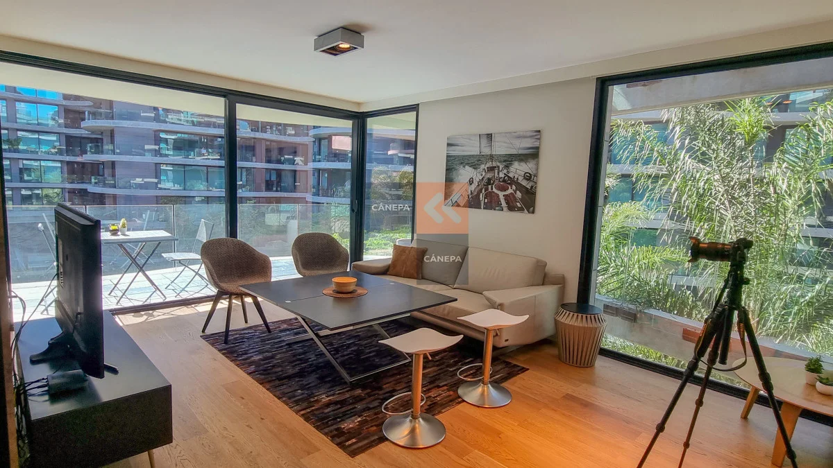 Amplio living comedor con ventanales de piso a techo, doble vidrio y salida a gran terraza