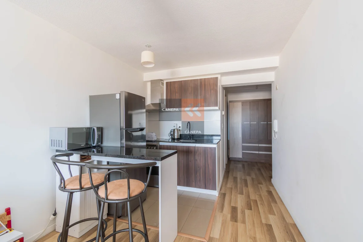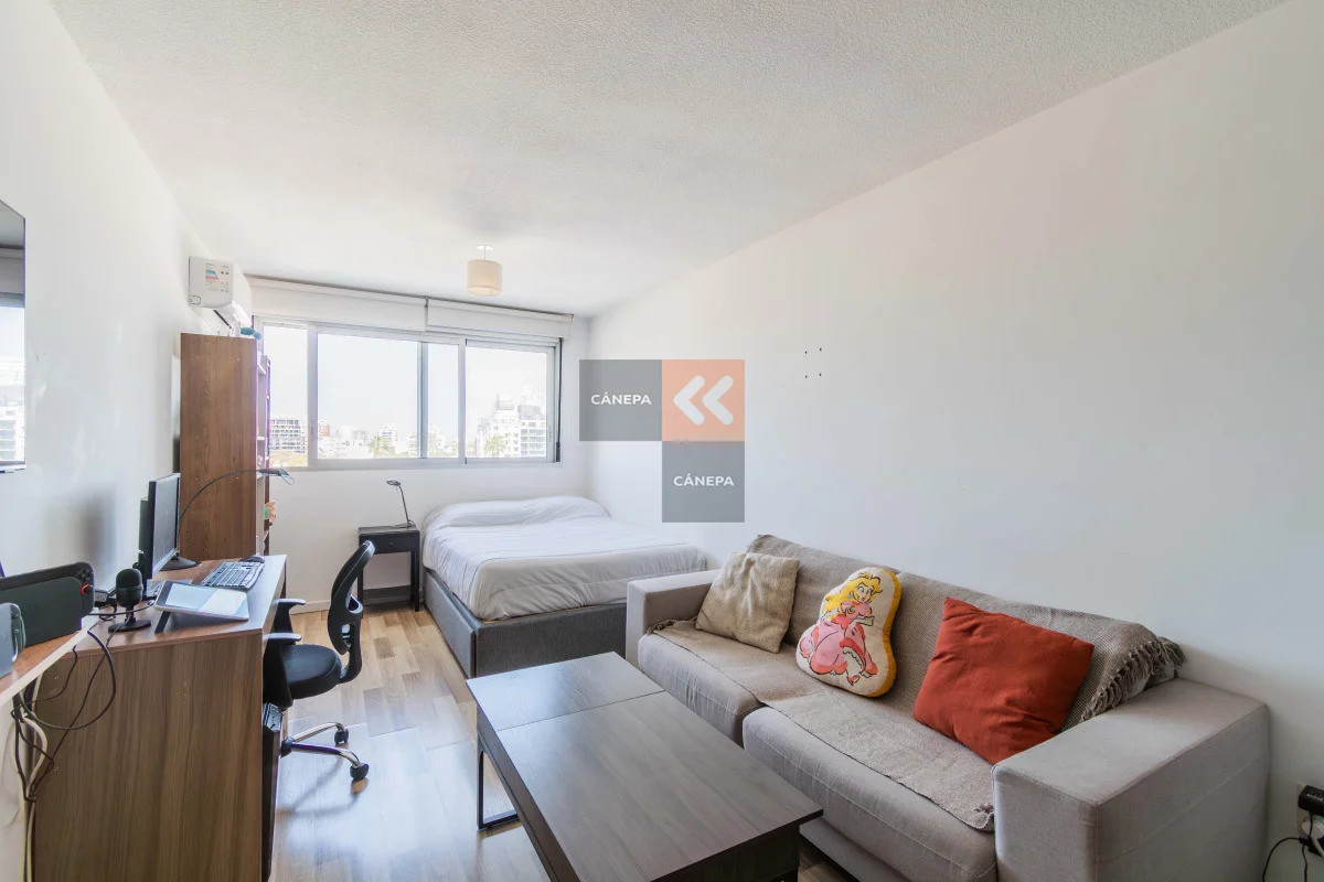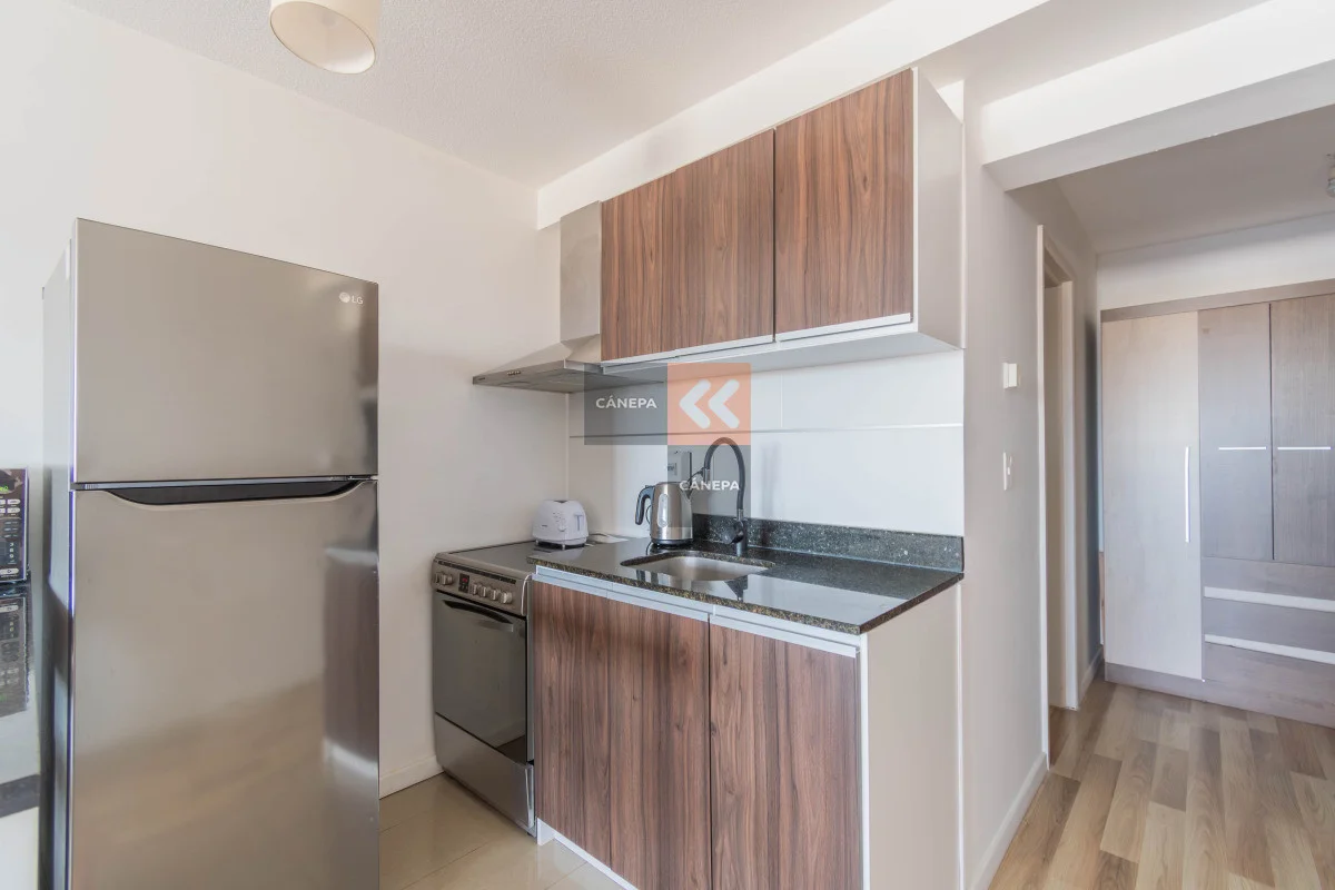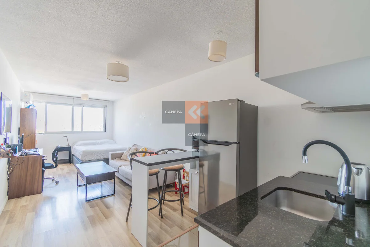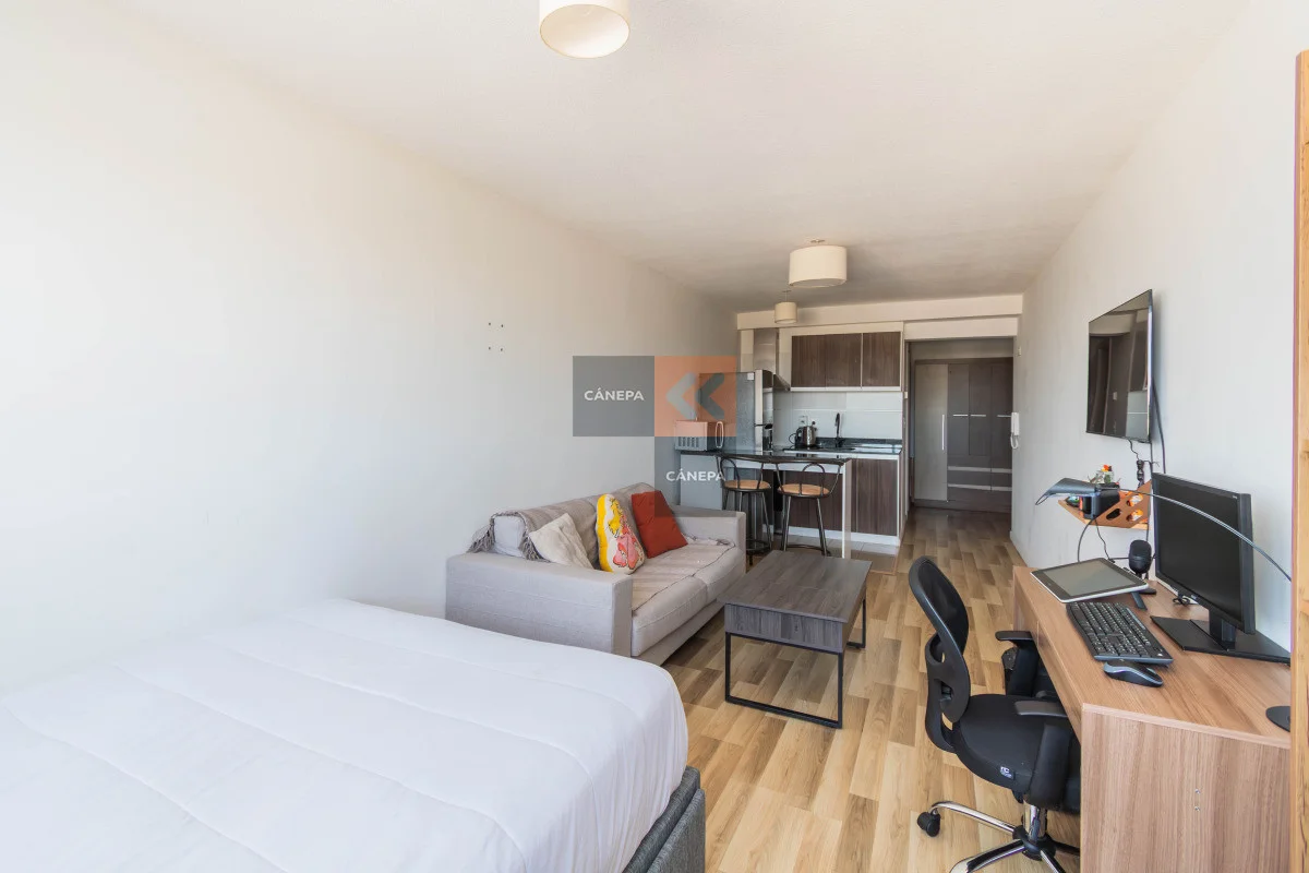 Ambiente único muy cómodo de 30 mts totales a contrafrente con mucho sol. Cocina integrada 1 baño completo Edificio cuenta con gimnasio, barbacoa y laundry. Opción de alquiler incluye ropero, cocina eléctrica, barra, roller, calefon y aire. NO INCLUYE LOS MUEBLES Referencia Interna : Tera-16823