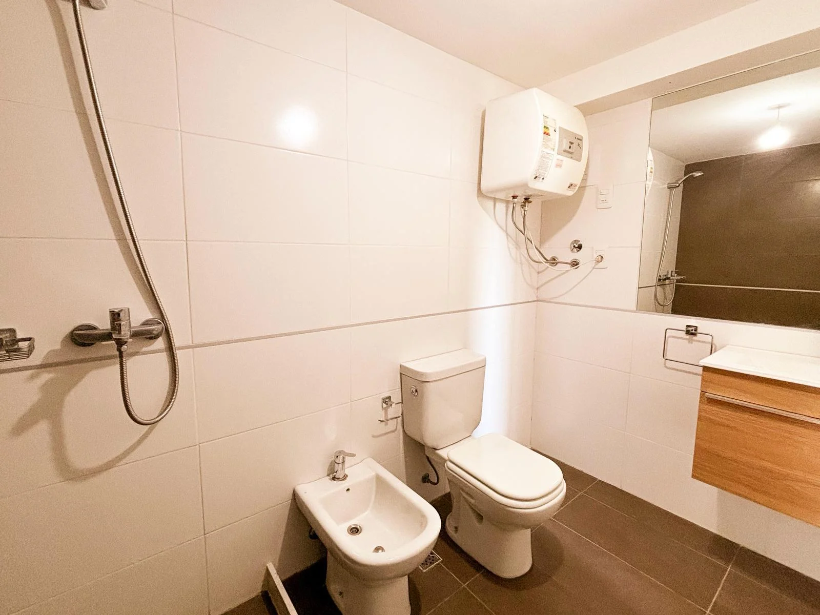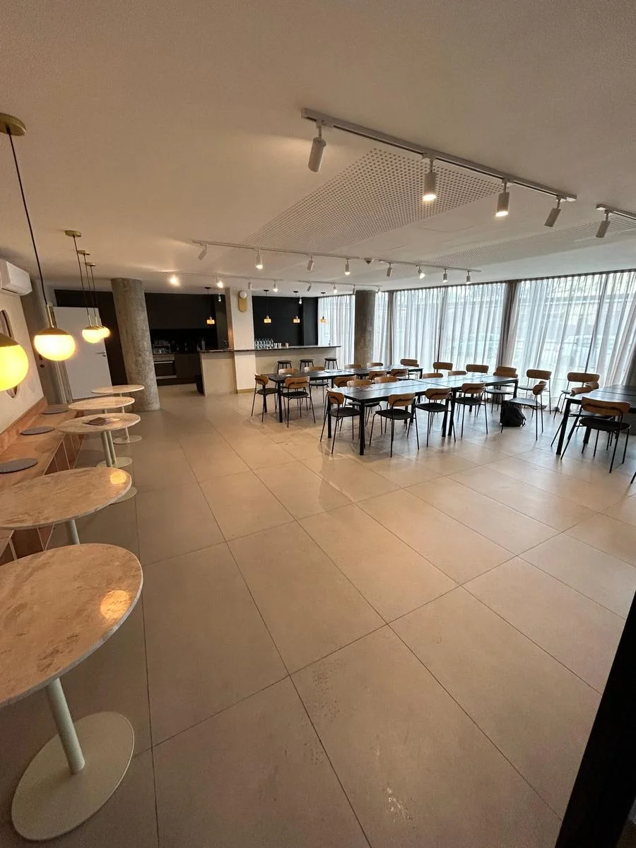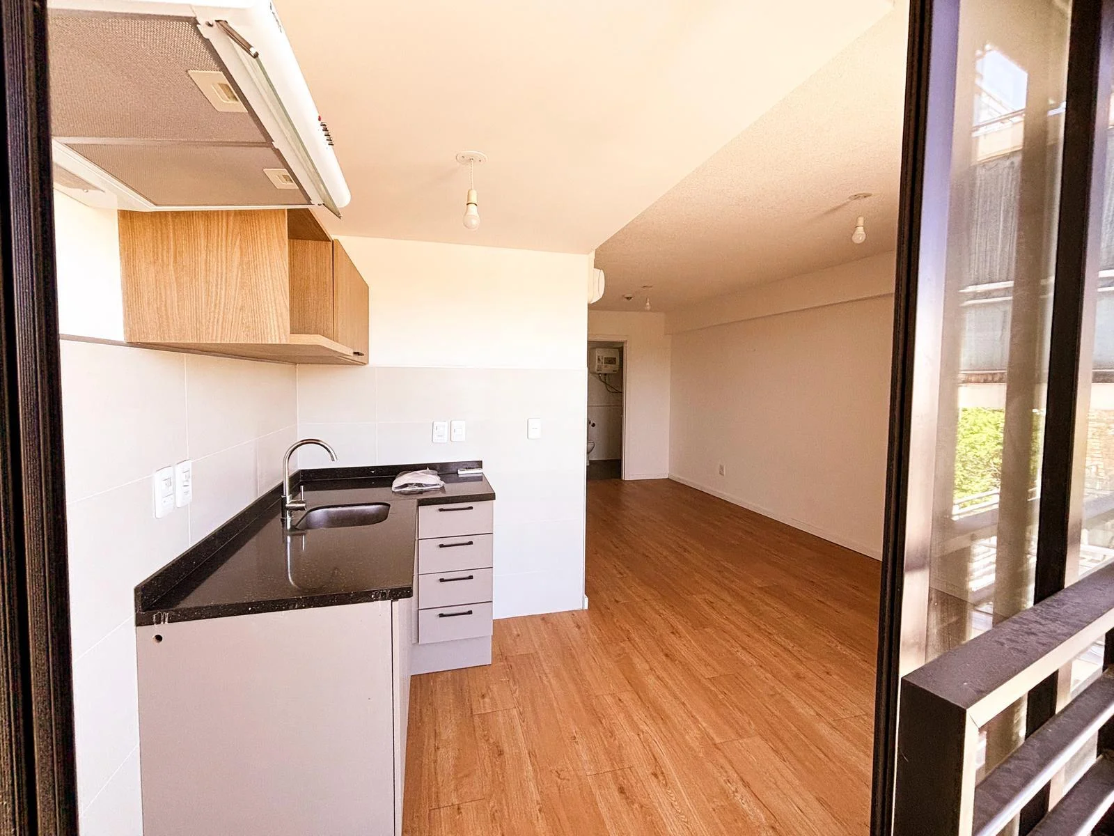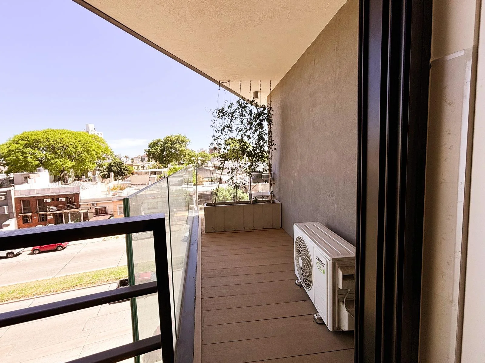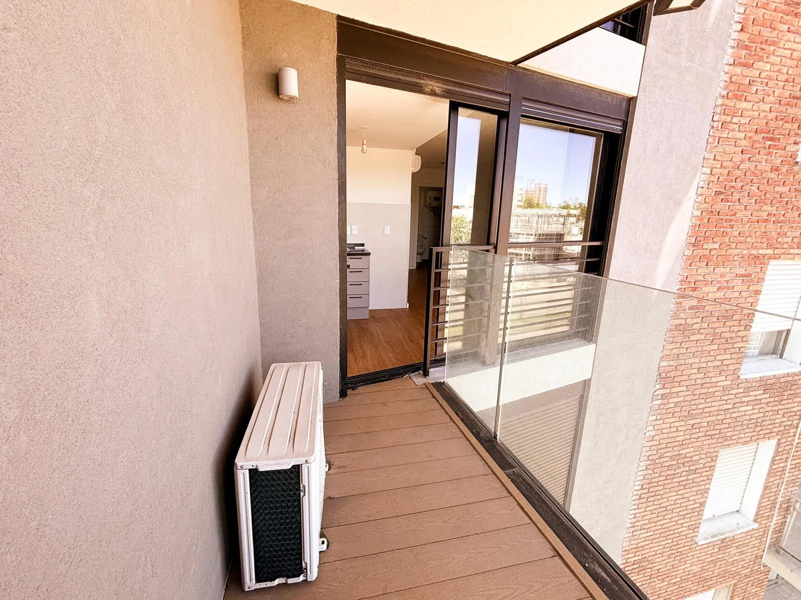 Cocina integrada de concepto abierto con mesada en "L", muebles aéreos y bajo mesada | Salida a balcón | Ambiente con ventanal | Cortinas de enrollar motorizadas | Aire acondicionado | Baño completo con conexión para lavadora y calefón | Acceso digital a la unidad con portero inteligente.