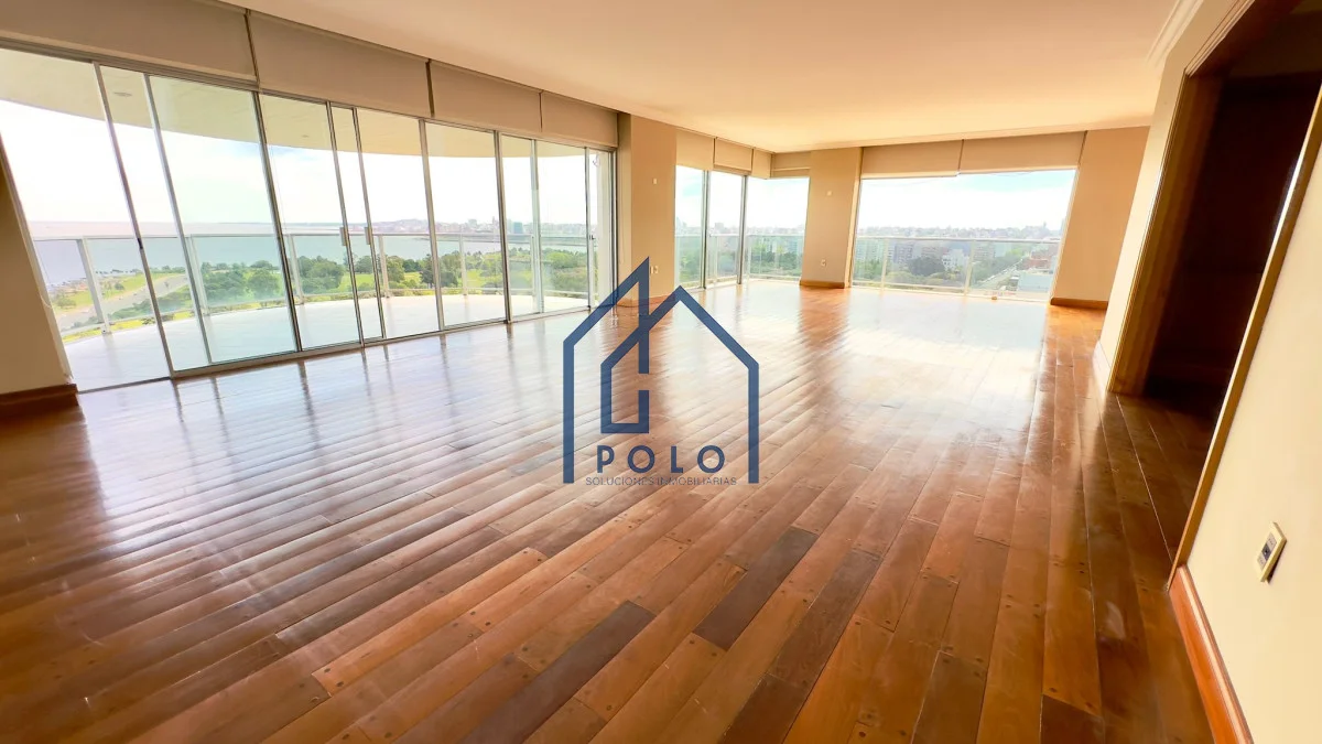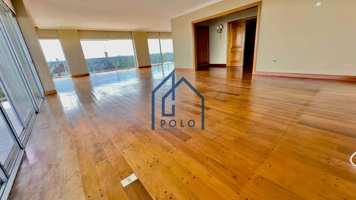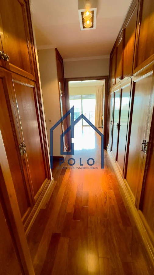 Excelente carpintería y pisos en lapacho, recepción con placard despojador y magníficas terrazas para deleitarse con los atardeceres y la entrada de barcos al puerto de Montevideo. 3 amplios dormitorios con muy buenos placares y 5 baños, 2 de ellos en suite. El dormitorio principal en suite mira al frente y es de gran tamaño, cuenta con un precioso vestidor, baño con jacuzzi .