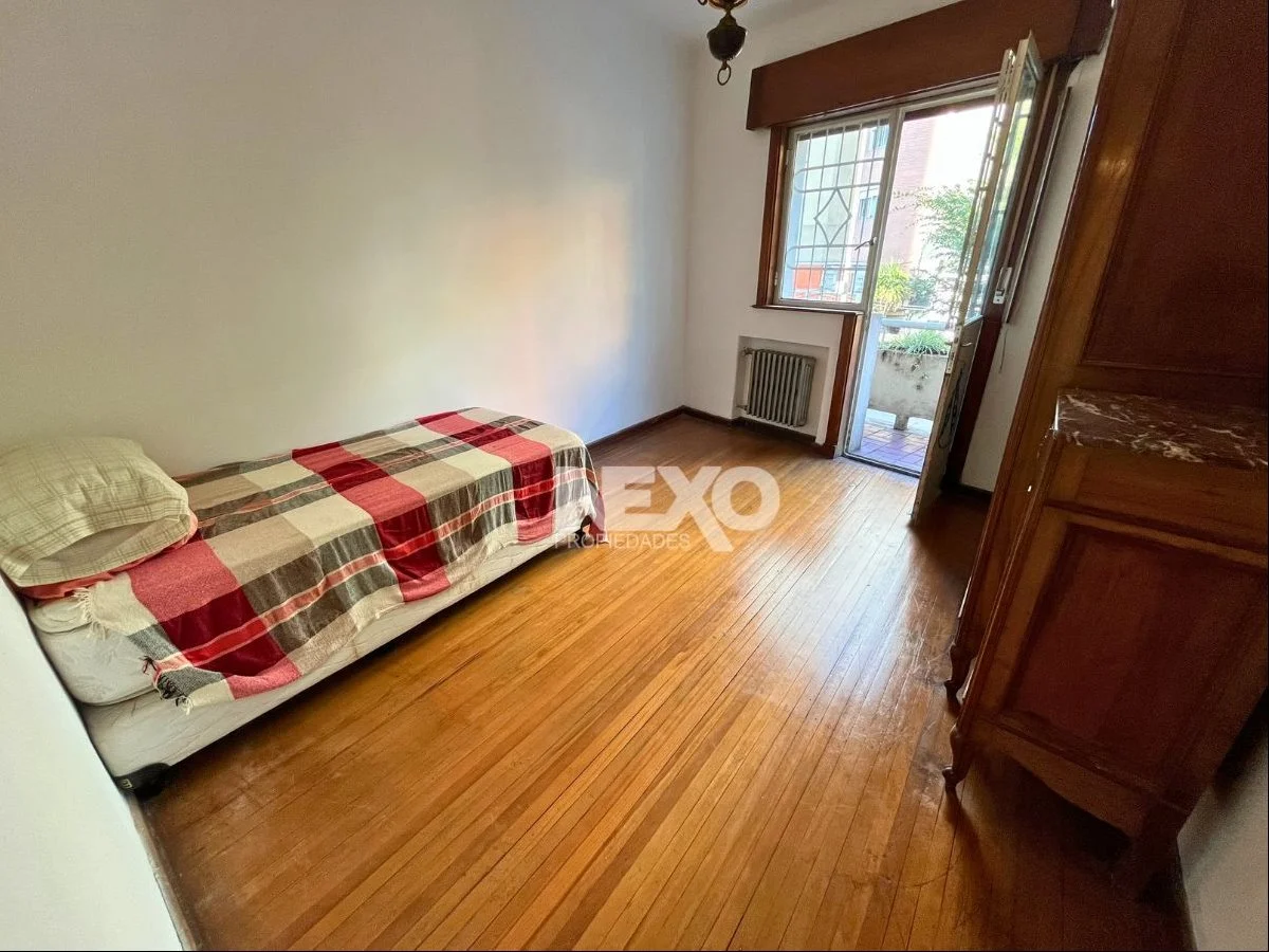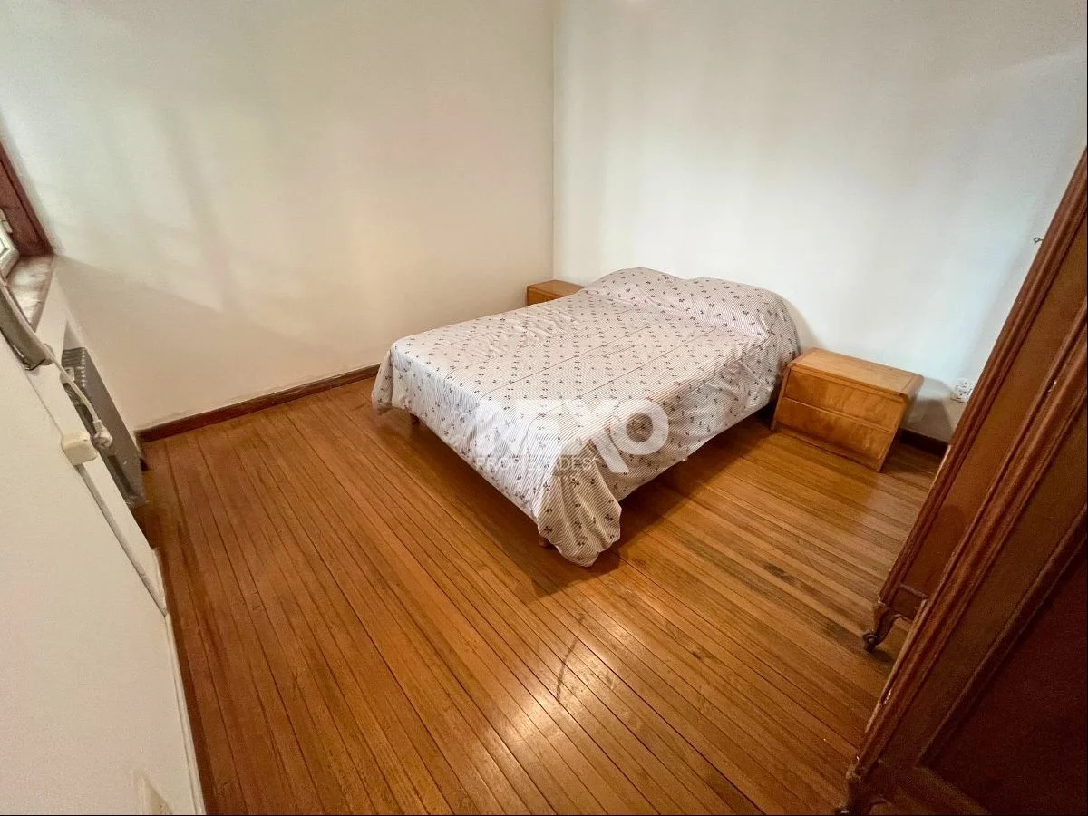 Living y comedor por separado y al frente con pisos de lapacho tarugado, 2 amplios dormitorios de 3.66 x 3.11 y 3.73 x 3.12 (entran camas grandes o 2 camas simples por habitación) con pisos de madera. La habitación del frente tiene acceso a un balcón con puerta ventana con persiana y rejas, la del contrafrente ventana grande con persiana con rejas exteriores.