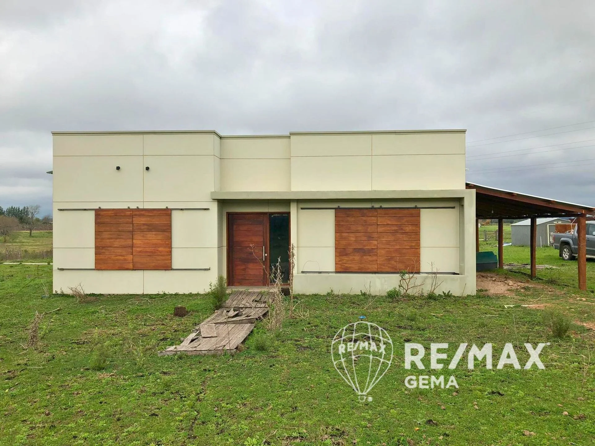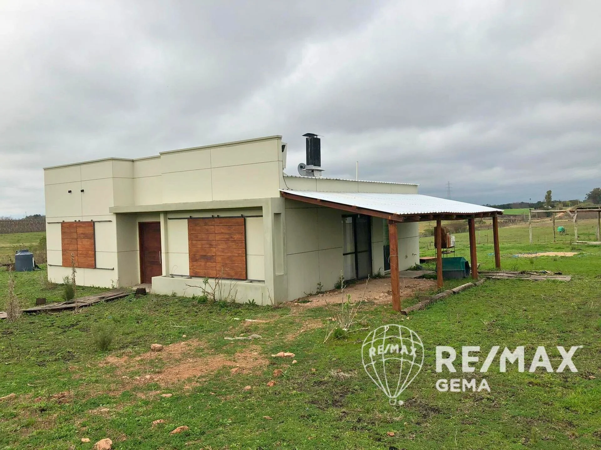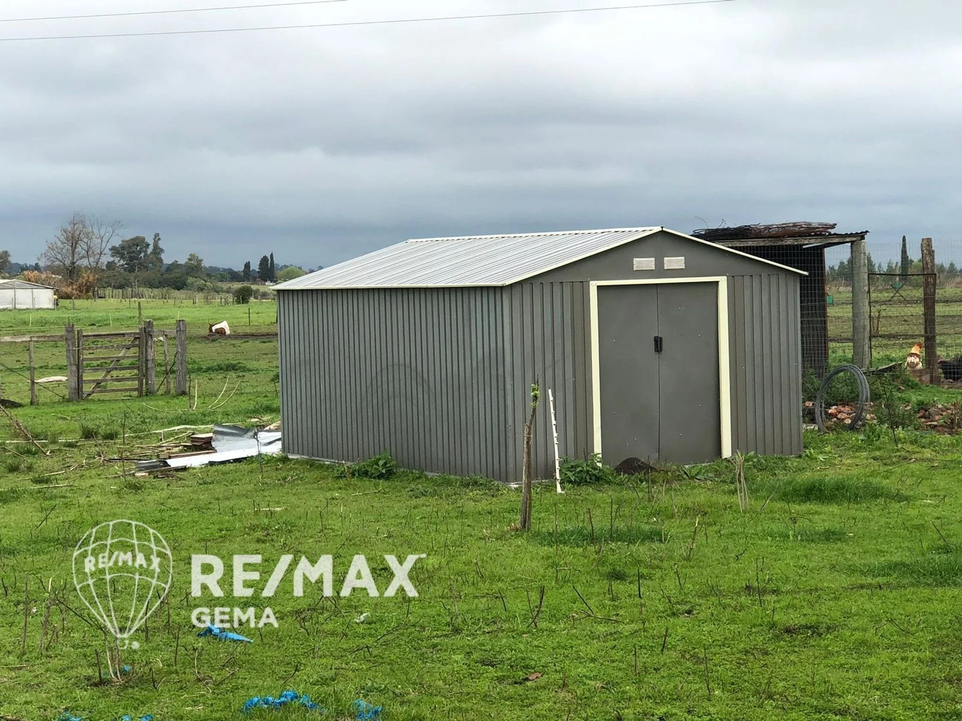 Deposito prefabricado al fondo de la propiedad.