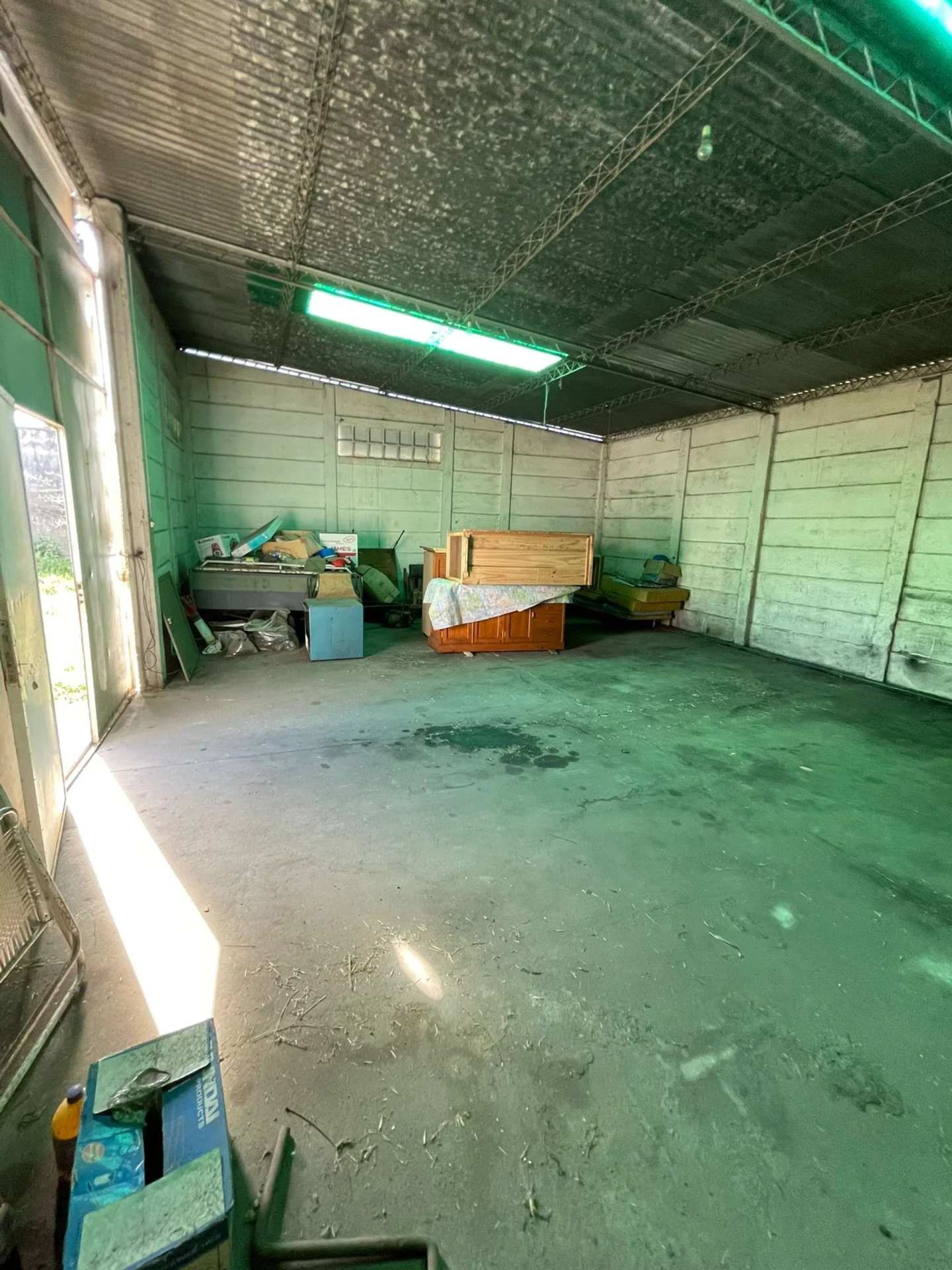 Entrada lateral cerrada con portón de rejas, con espacio para 3 vehículos.