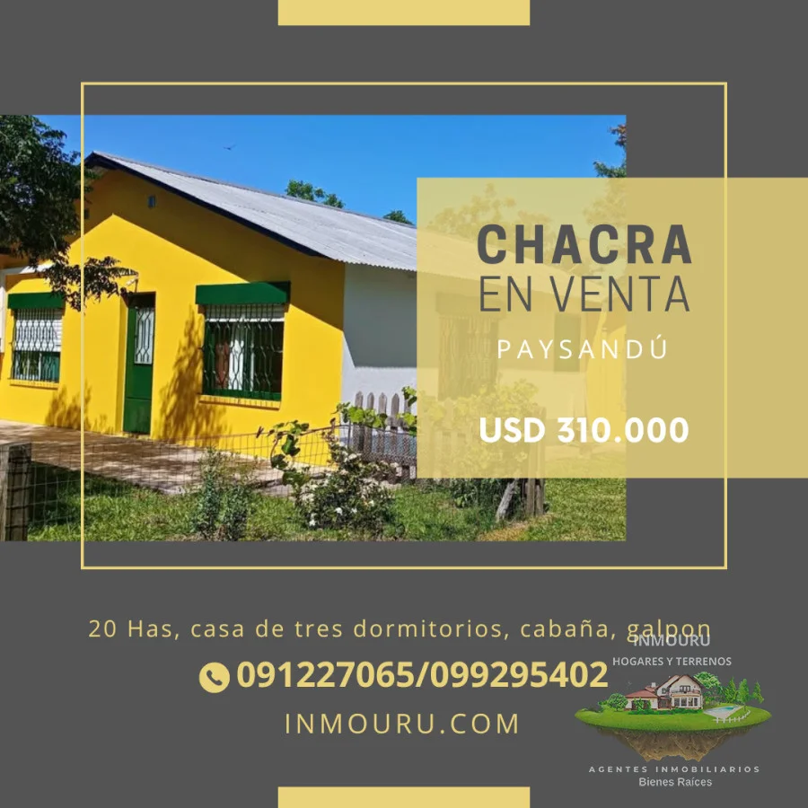 Se vende chacra con casa en Paysandú, en zona rural próximo a Cerro Chato y Gallinal.