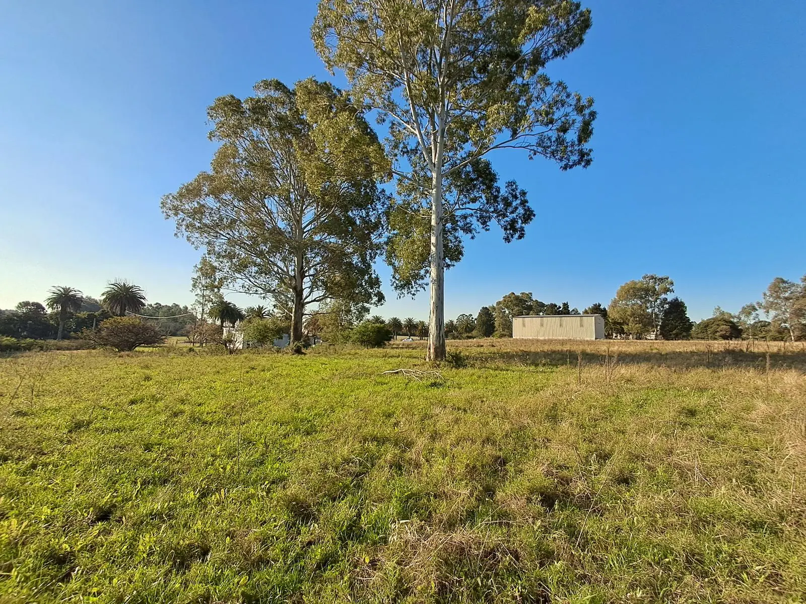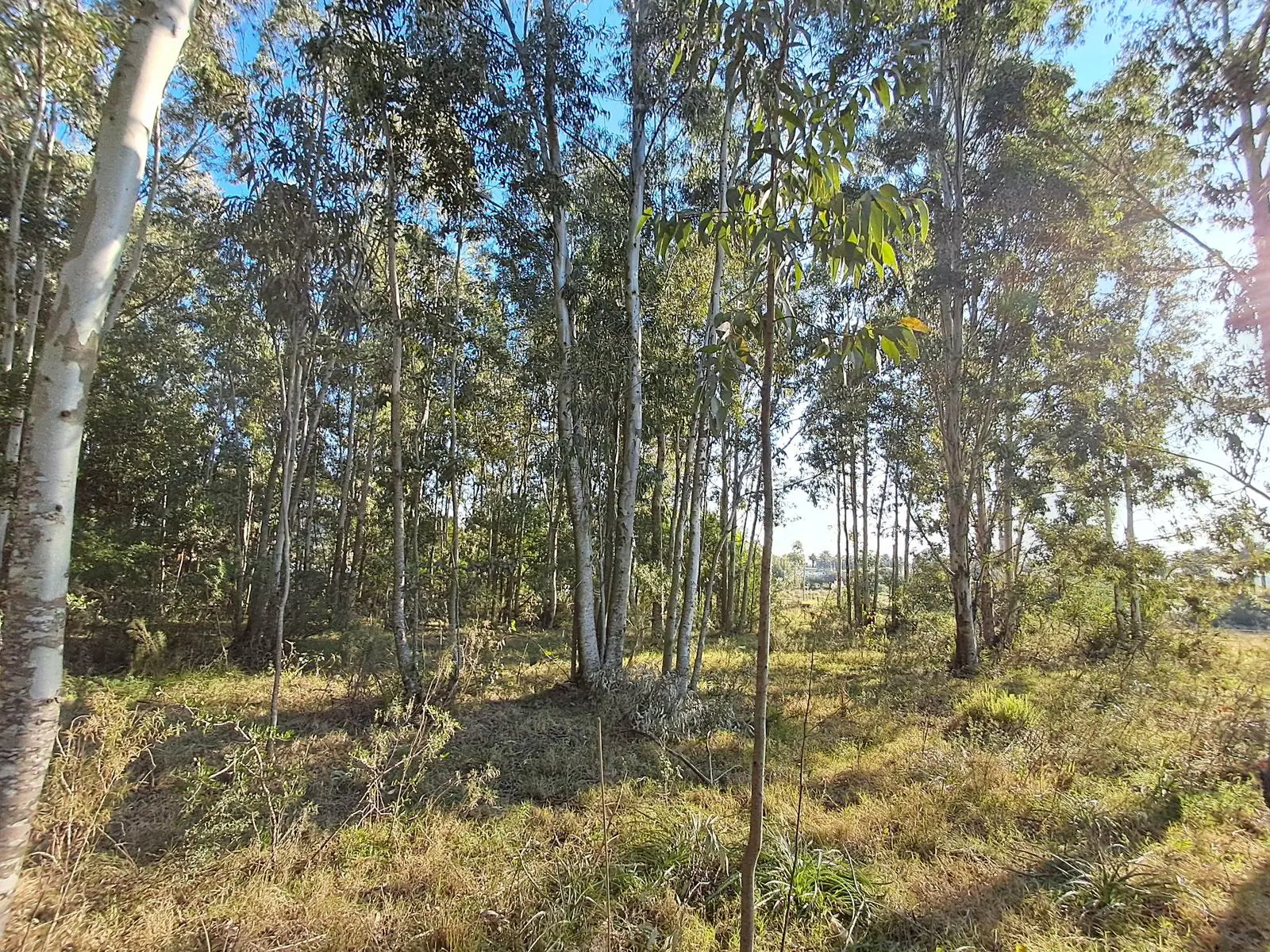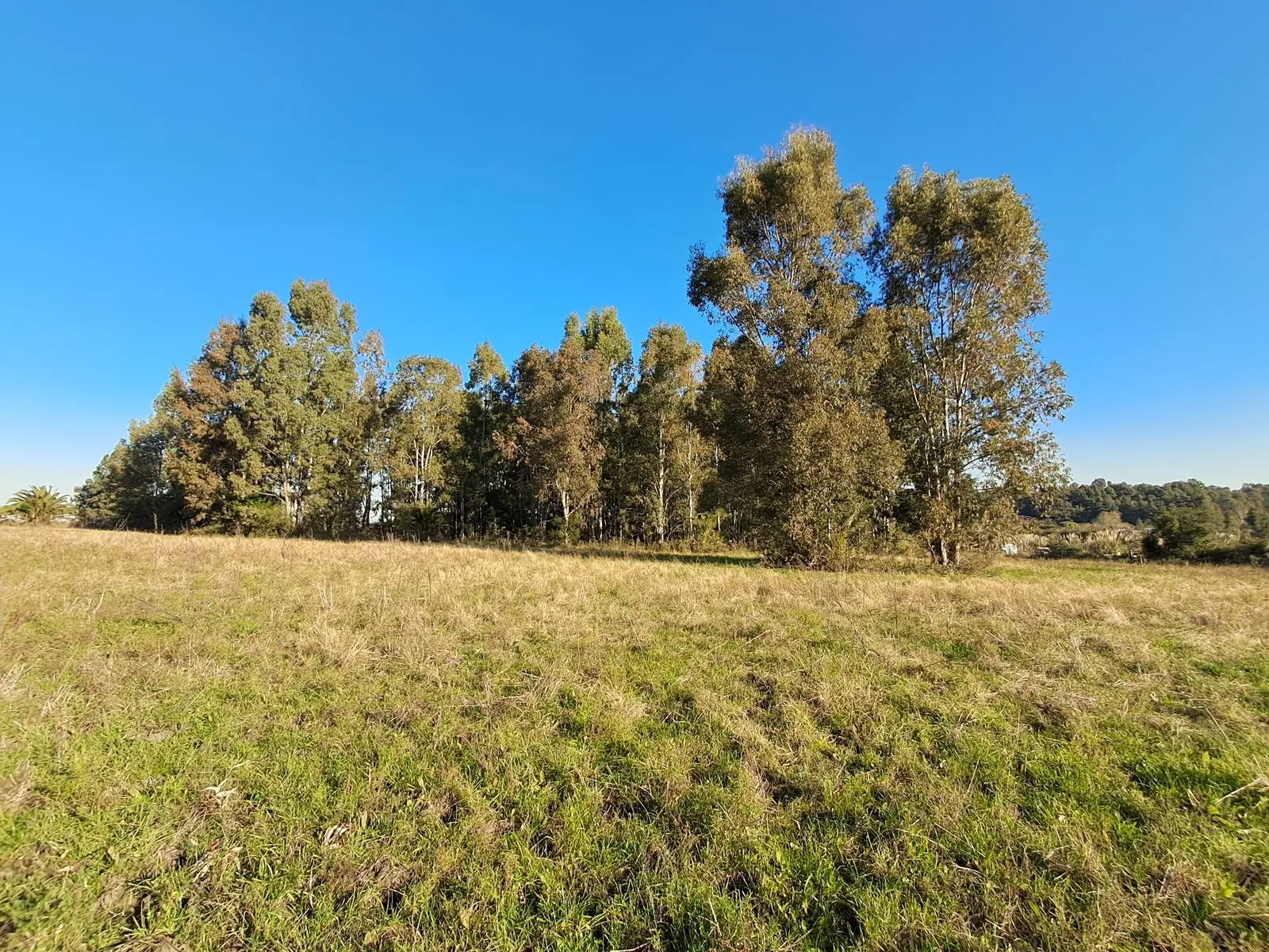 BUEN TERRENO CON MONTE DE EUCLAIPTUS AL FONDO QUE PROTEGE DEL VIENTO Y PROVEE DE LEÑA.