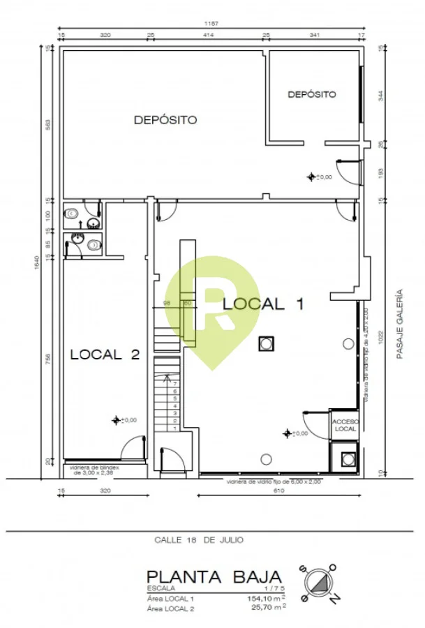 LOCAL GALERIA LEIZA LOCAL CON UNA EXCELENTE UBICACIÓN COMERCIAL, SOBRE 18 DE JULIO ENTRE RINCÓN Y 25 DE AGOSTO. LOCAL 1: CUENTA CON AMPLIO SALÓN COMERCIAL ESQUINERO CON VIDRIERAS (80 m2), MOSTRADOR, 2 AMPLIOS DEPÓSITOS PARA MERCADERIAS (70 m2), 1 BAÑO. TOTAL: 150 m2 - aproximadamente. Referencia Interna : Tera-335