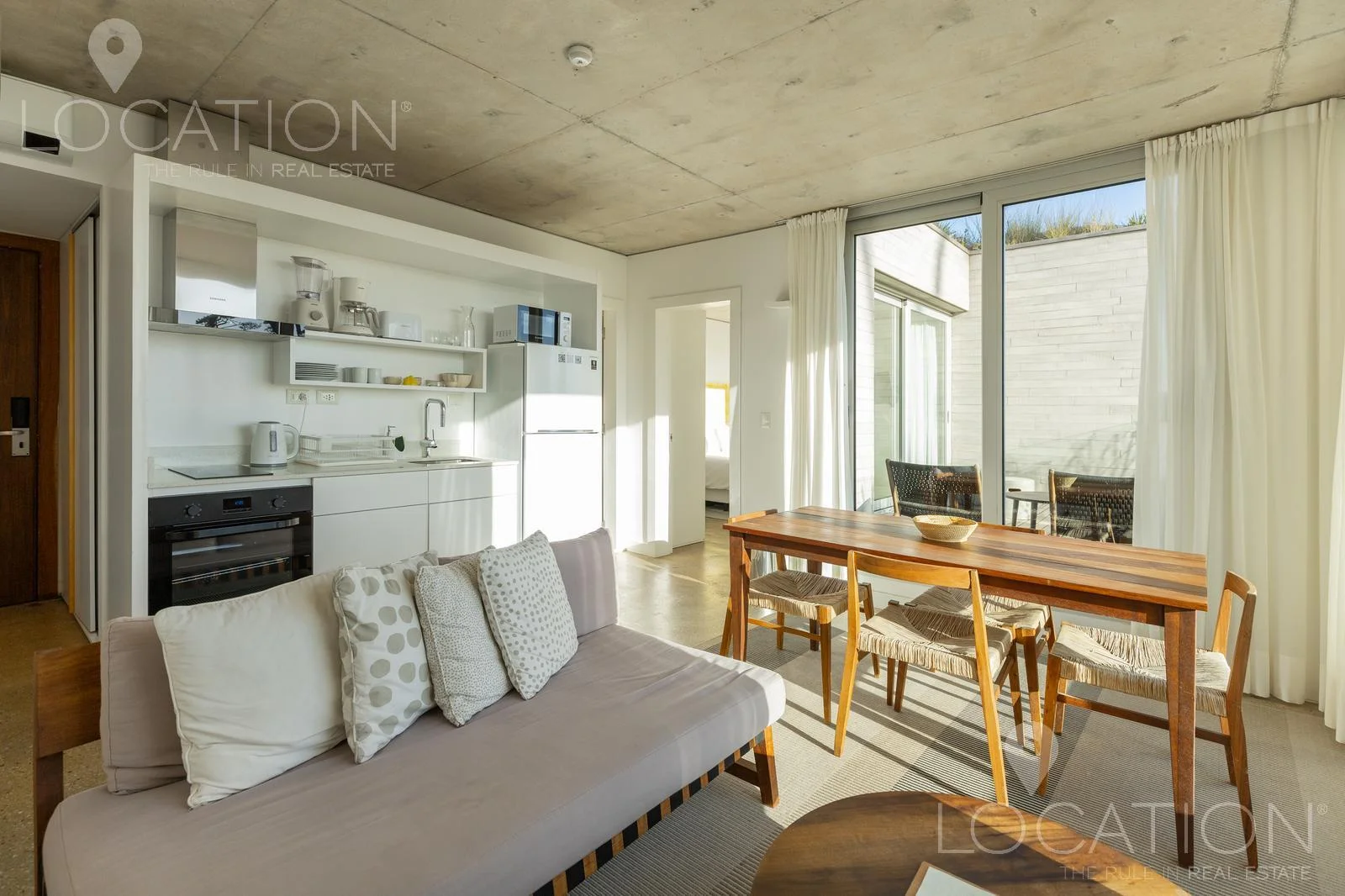 Espectacular apartamento de dos dormitorios en condo hotel, totalmente equipada y con renta estimada de un 6%.Cuenta con patio interno y terraza propia con vista al mar.