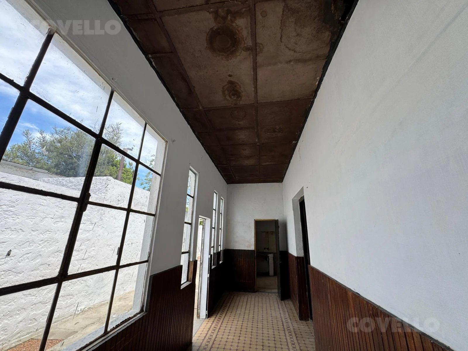 Dispone de 8 ambientes, 5 de ellos grandes, con techos altos, buena iluminación y estufa a leña. Incluye cocina definida, dos baños y patio.