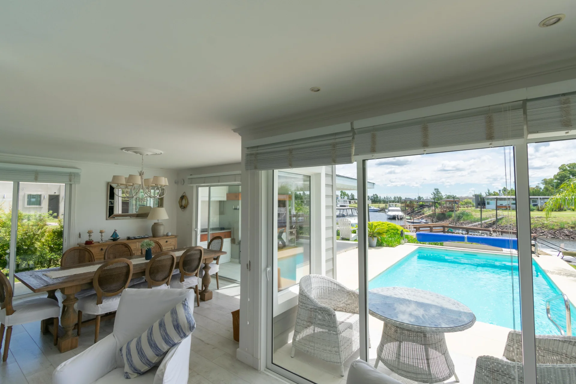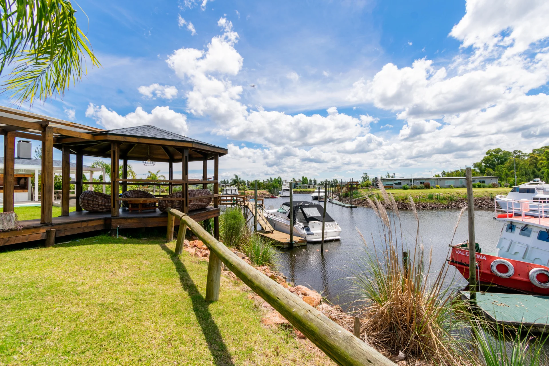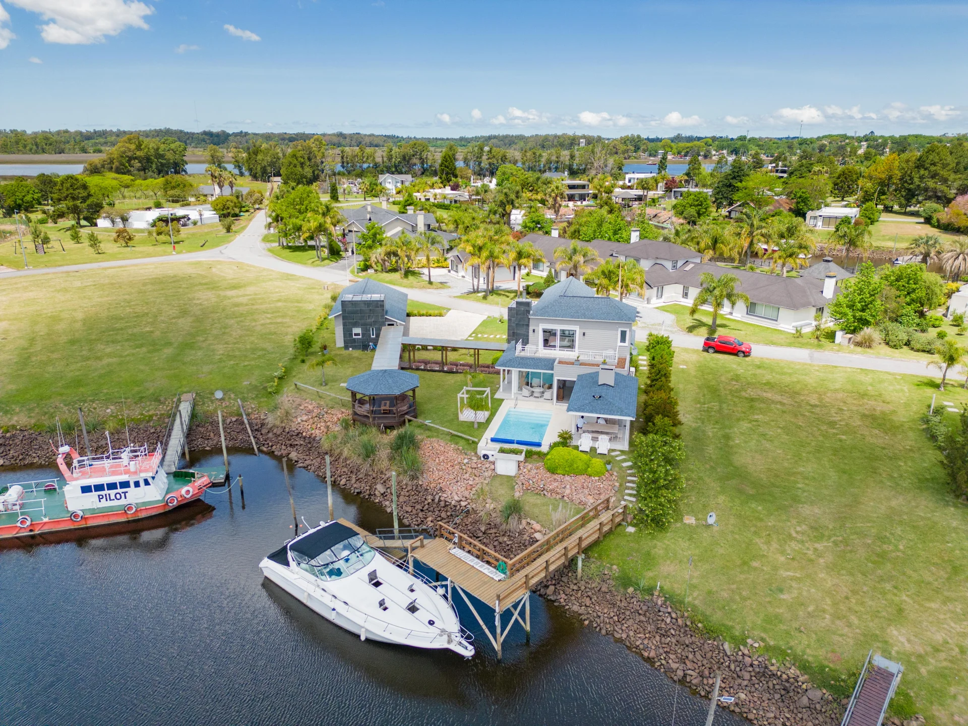 Casa en Marina Santa Lucía, urbanización náutica ubicada a 30 minutos de Montevideo. Barrio privado con seguridad 24/7, acceso directo al canal, espacios verdes, gimnasio, juegos para niños y canchas de deportes.