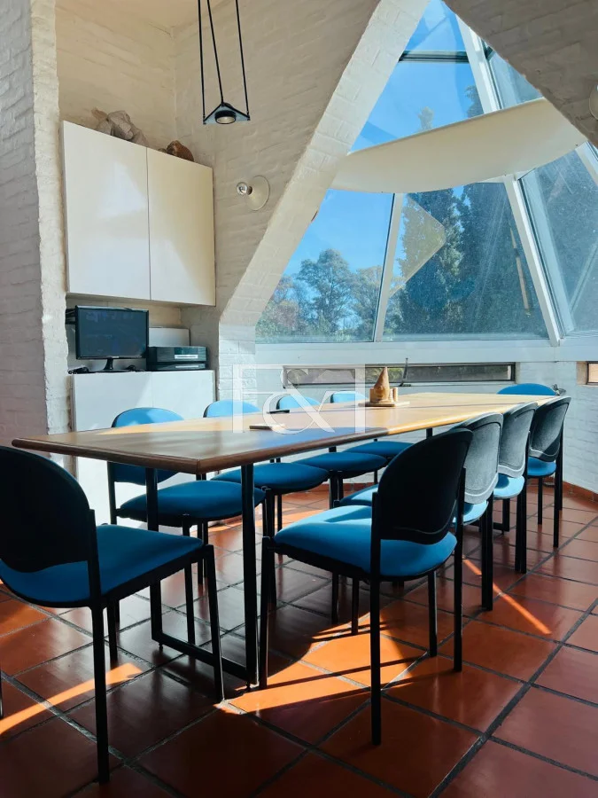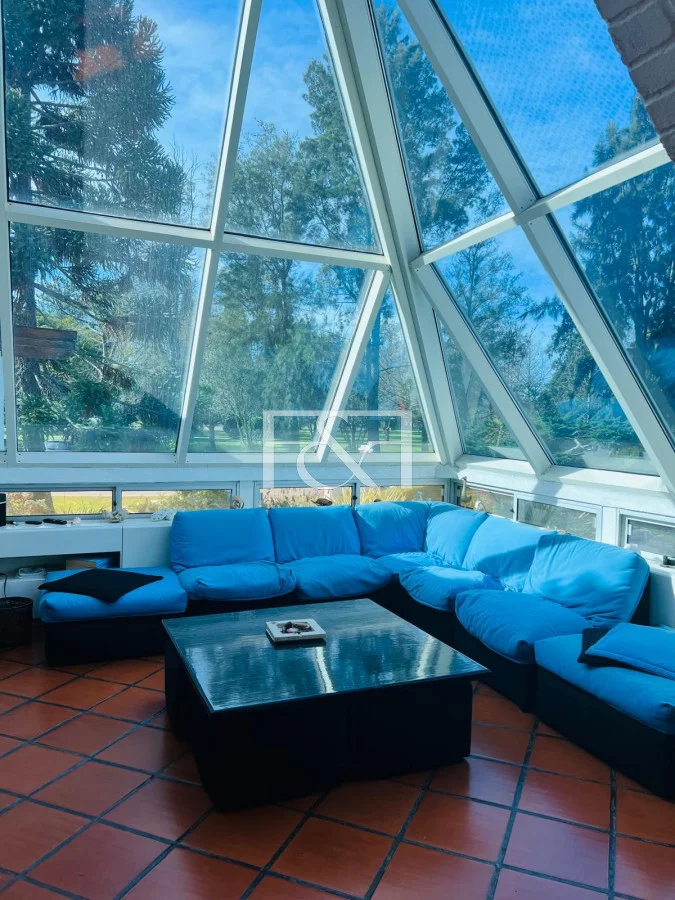 Además el área de comedor de encuentra en la misma planta teniendo las vistas a todo el exterior ya que también allí predomina la cúpula de vidrio .