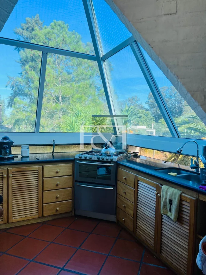 En la planta superior se encuentra la cocina en forma de cúpula de vidrio, que permite vistas panorámicas y ofrece una experiencia de cocina funcional y estética.