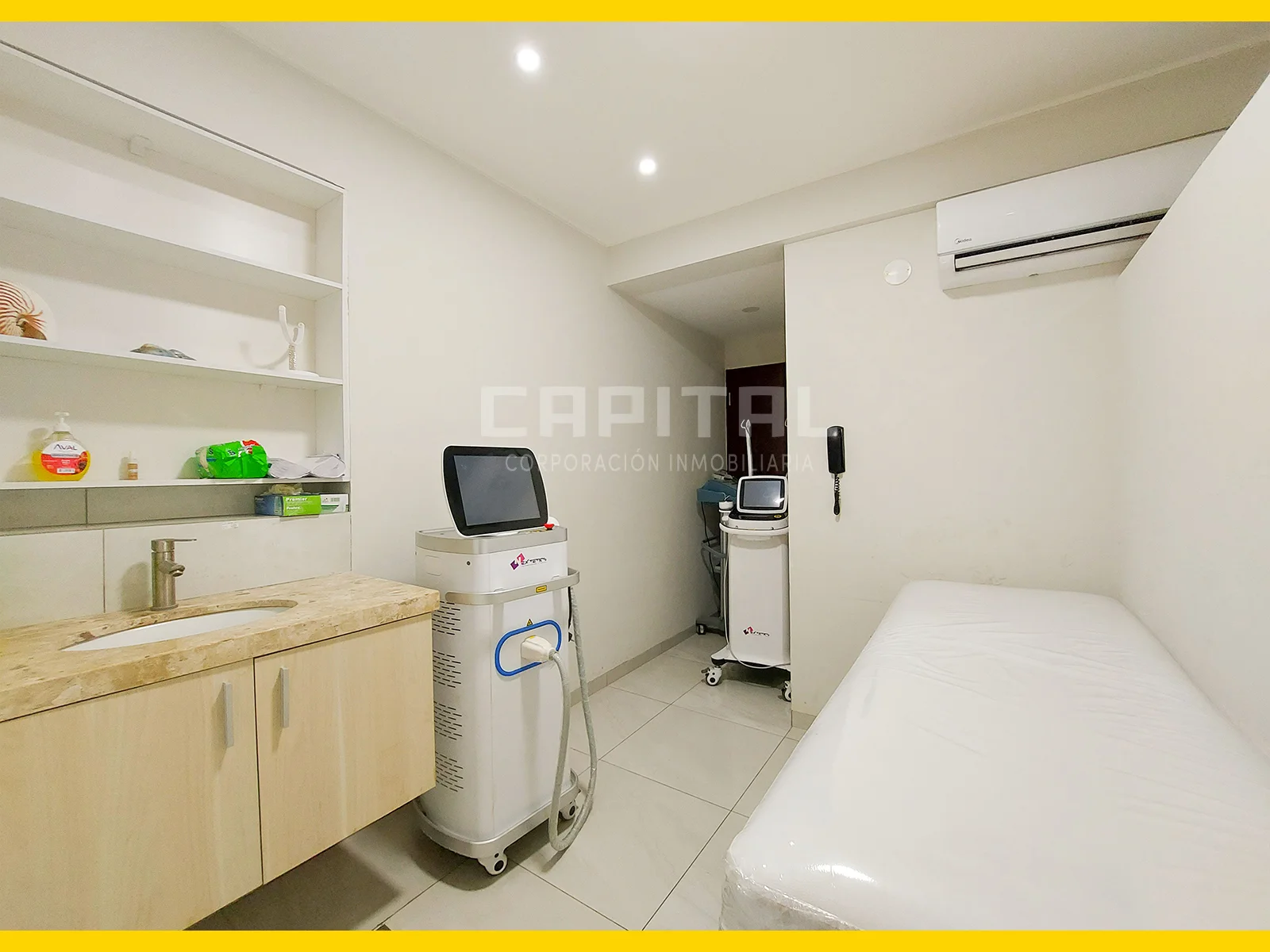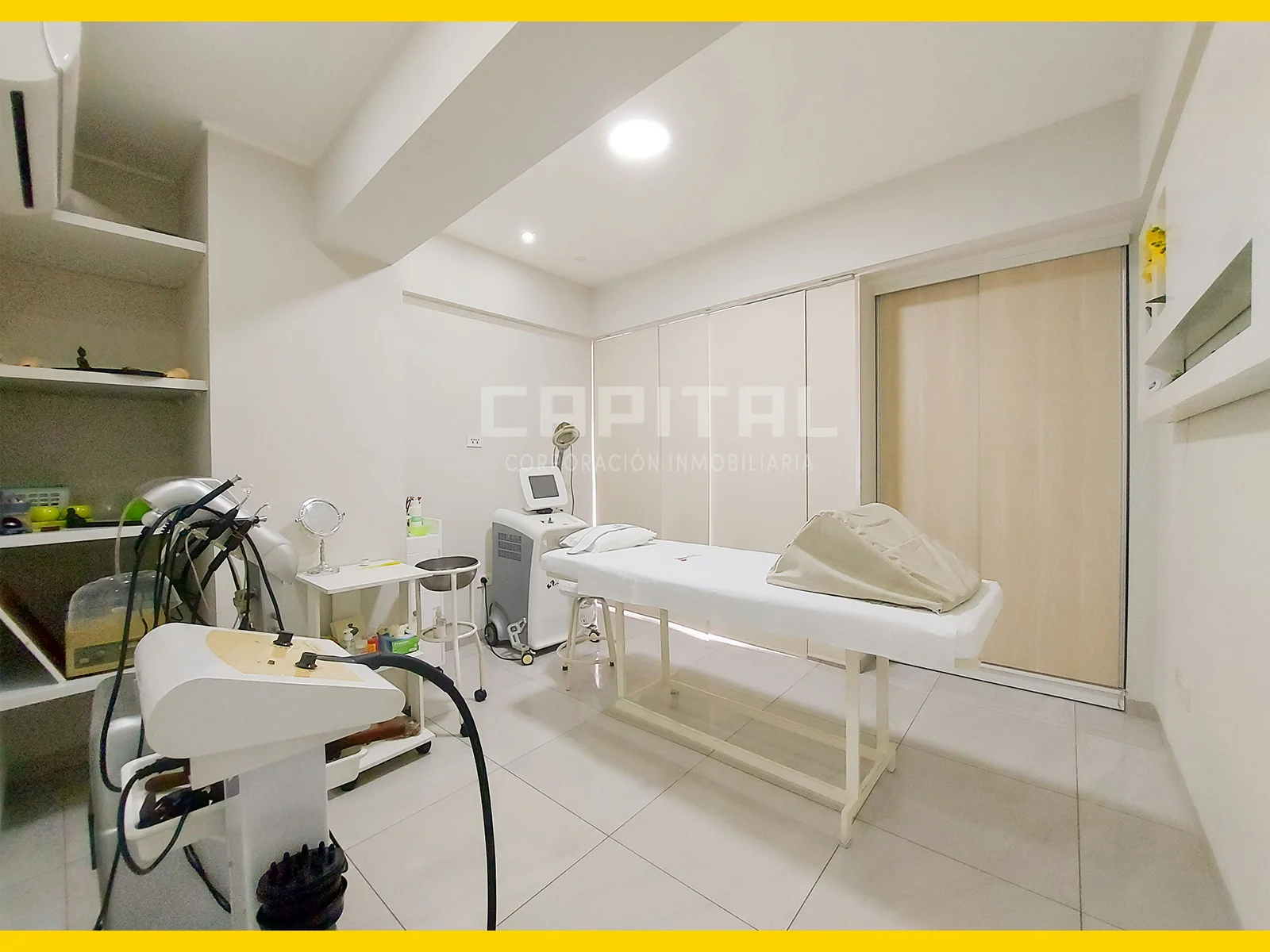 Equipamiento completo: Todo listo para seguir funcionando y operando en cualquier ciudad de Bolivia, con ambientes cómodos, funcionales muy bien decorados, incluye más de 50 equipos de tratamientos corporales y faciales de última generación, gabinetes completos con divisiones desmontables, camillas, todo el mobiliario, cocinas totalmente equipadas y con toda su dotación, sistemas administrativos (computadoras e impresoras) y sistemas se seguridad con monitoreo.